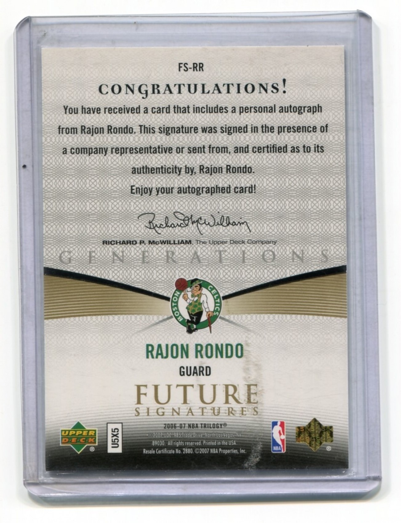 This listing is for 2006-07 Upper Deck Trilogy Generations Future Signatures #FSRR Rajon Rondo Autograph RARE Celtics.