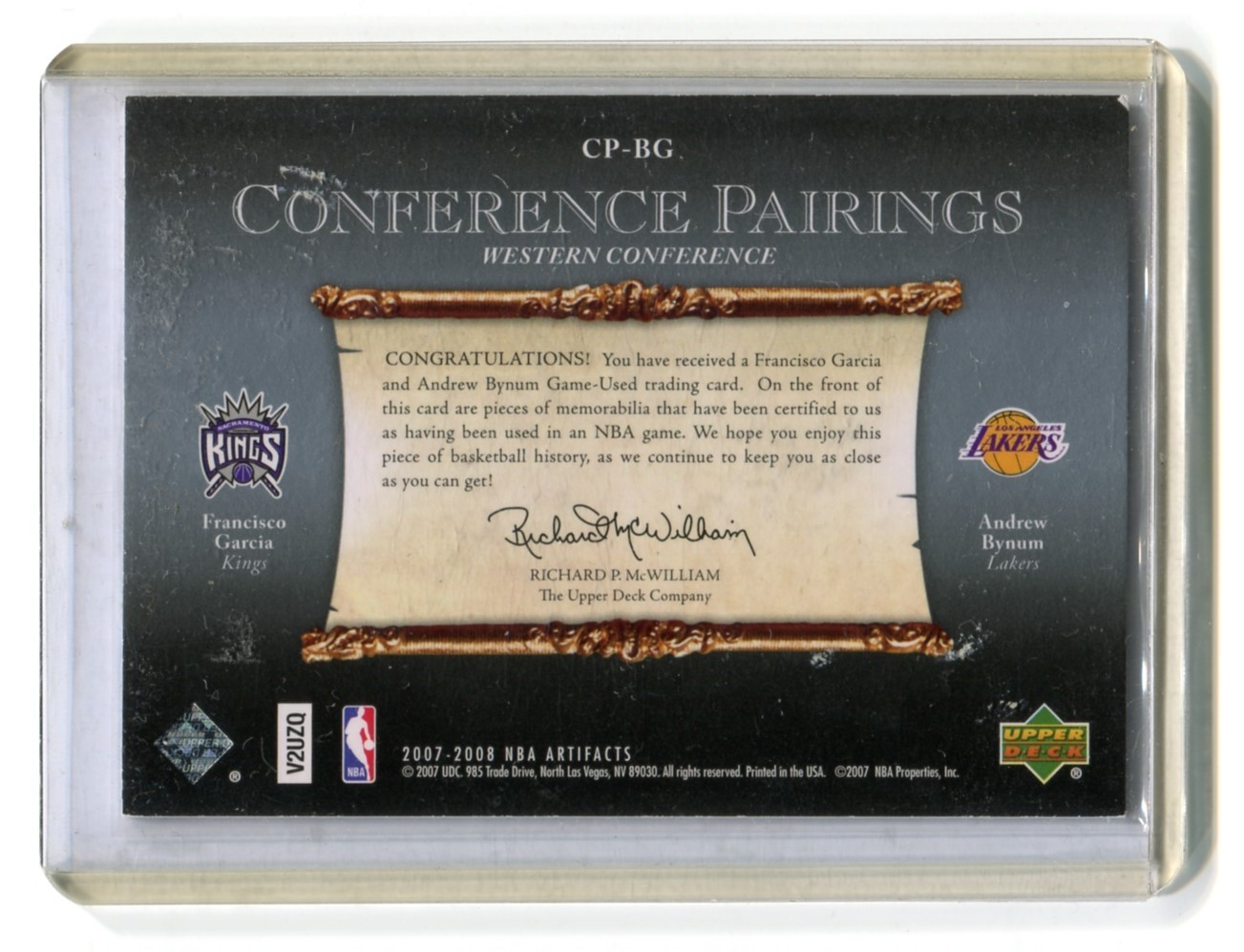 This listing is for 2007-08 Artifacts Conference Pairings #CPBG Francisco Garcia / Andrew Bynum 111/150 - Sacramento Kings / LA Lakers.