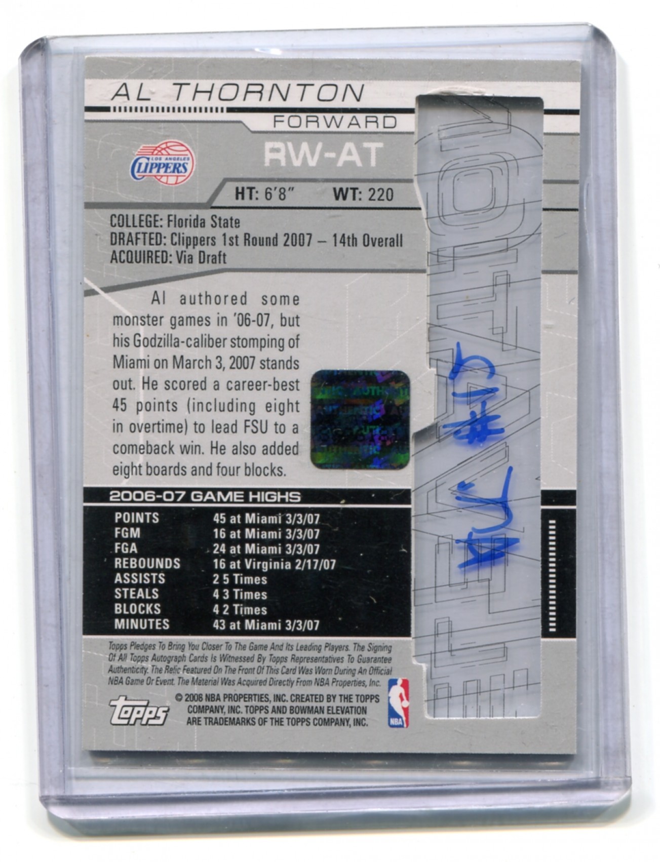This listing is for 2007-08 Bowman Elevation Rookie Writings Relics #RWAT Al Thornton 12/79 - Los Angeles Clippers.