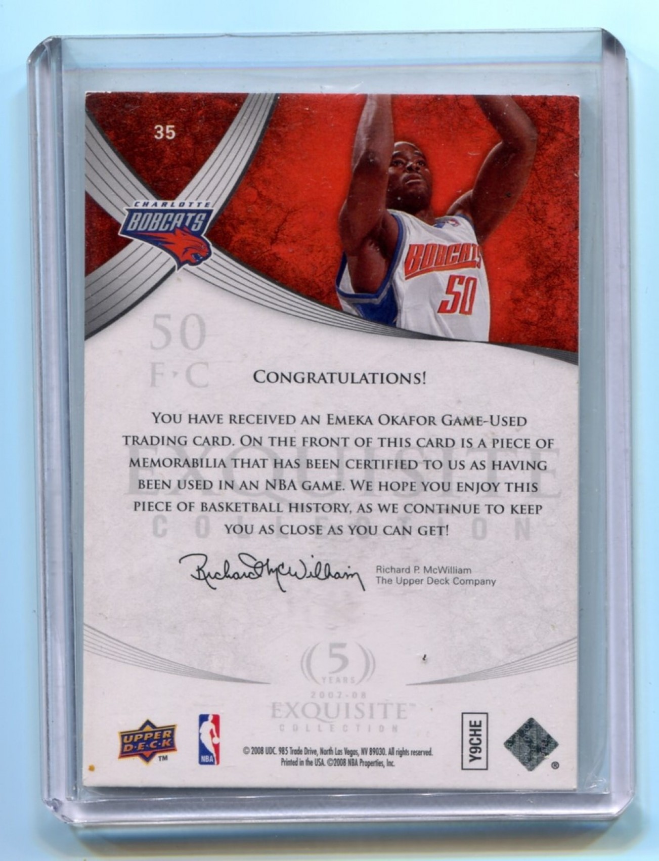 This listing is for 2007-08 Exquisite Collection Jerseys #35 Emeka Okafor 04/25 - Charlotte Bobcats.