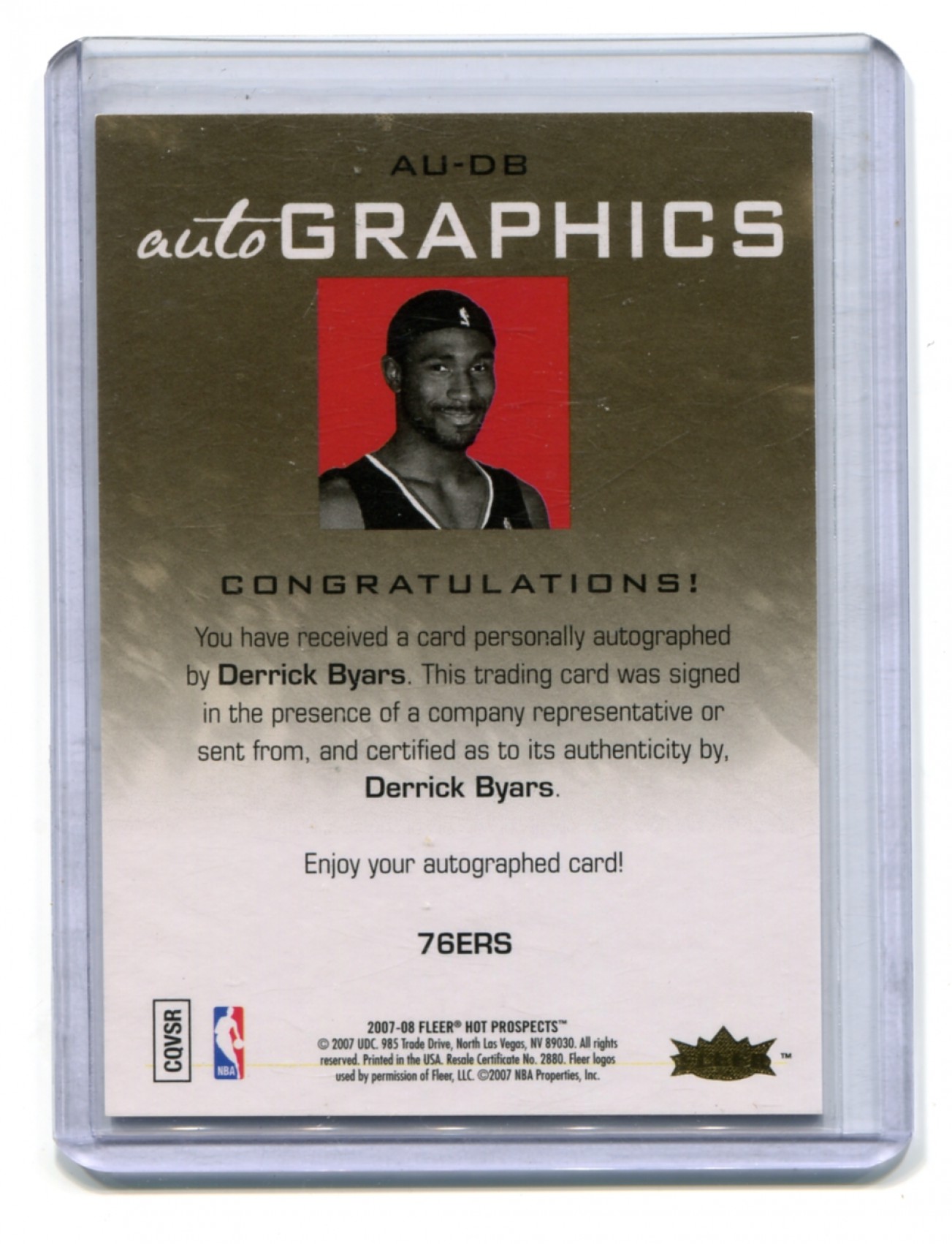 This listing is for 2007-08 Fleer Hot Prospects Autographics #DB Derrick Byars - Philadelphia 76ers.