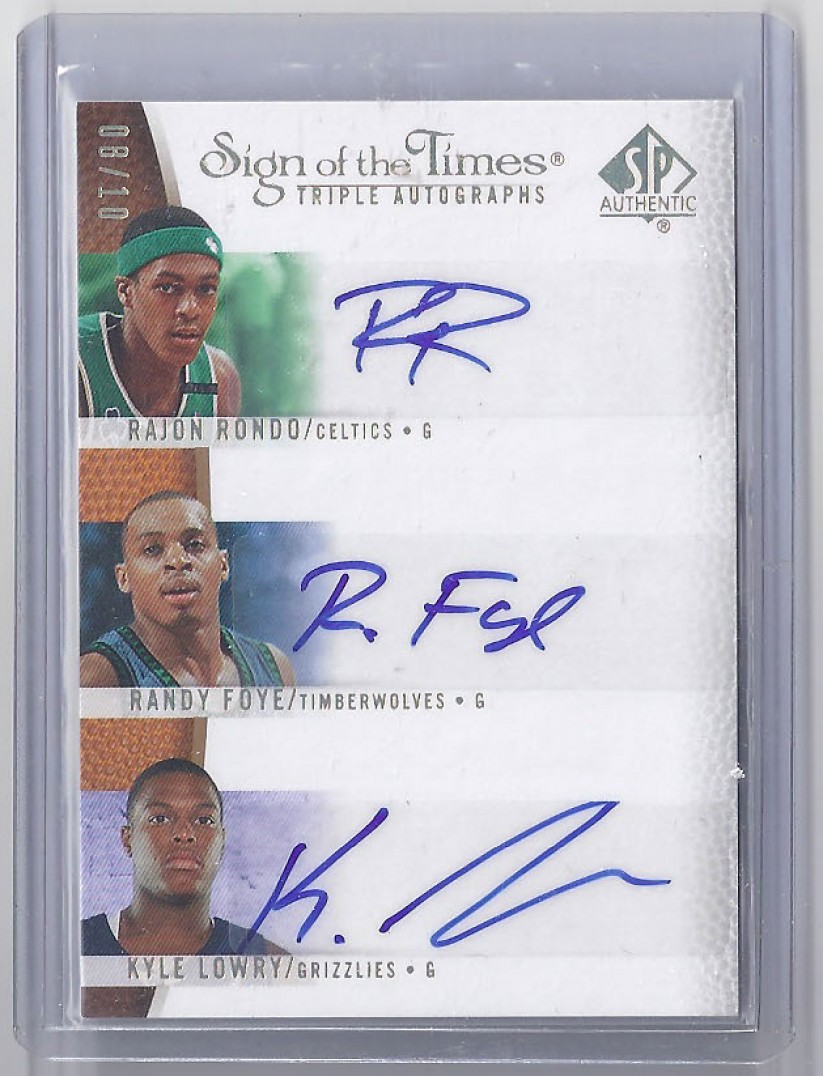 This listing is for 2007-08 SP Authentic Sign of the Times Triple #FLR Randy Foye/Rajon Rondo/Kyle Lowry numbered 08/10.
