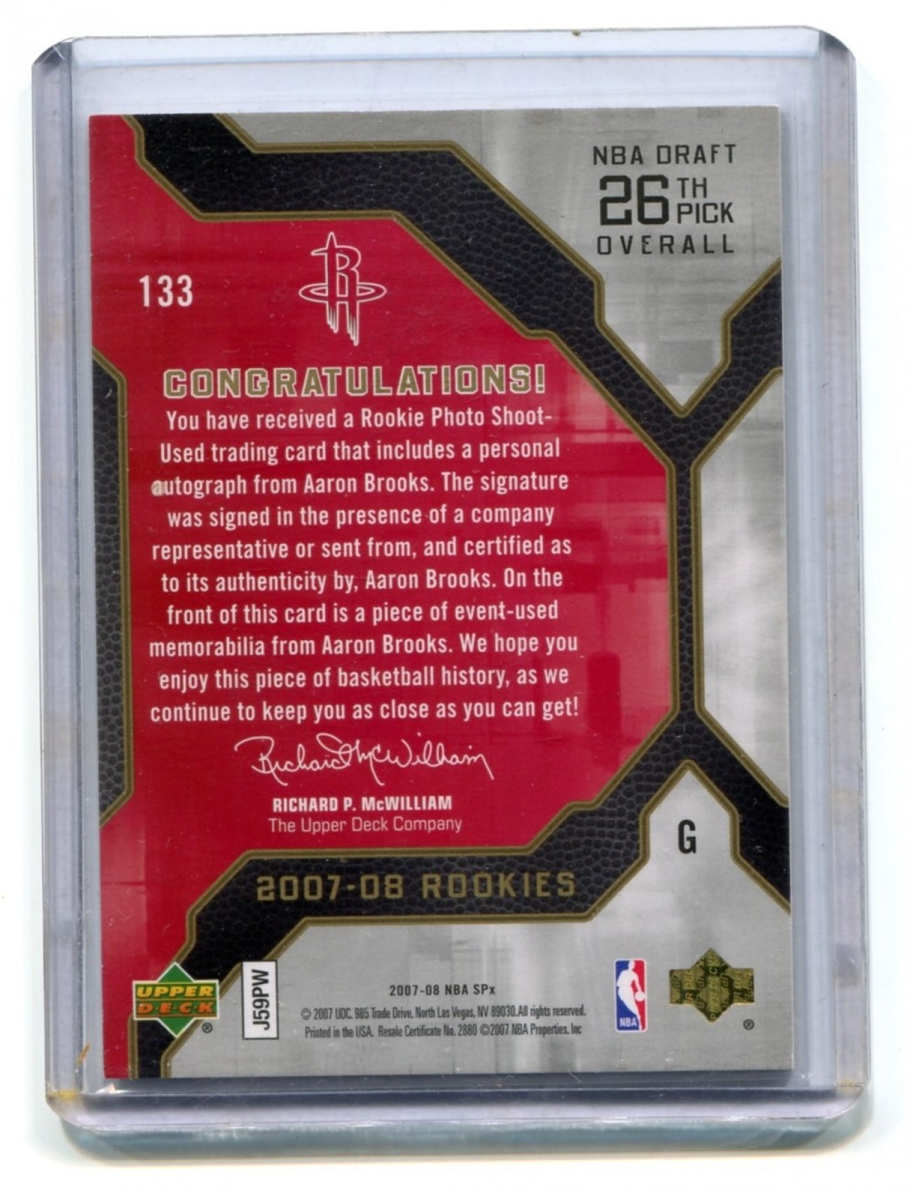 This listing is for 2007-08 SPx #133 Aaron Brooks JSY AU RC 104/825 - Houston Rockets.