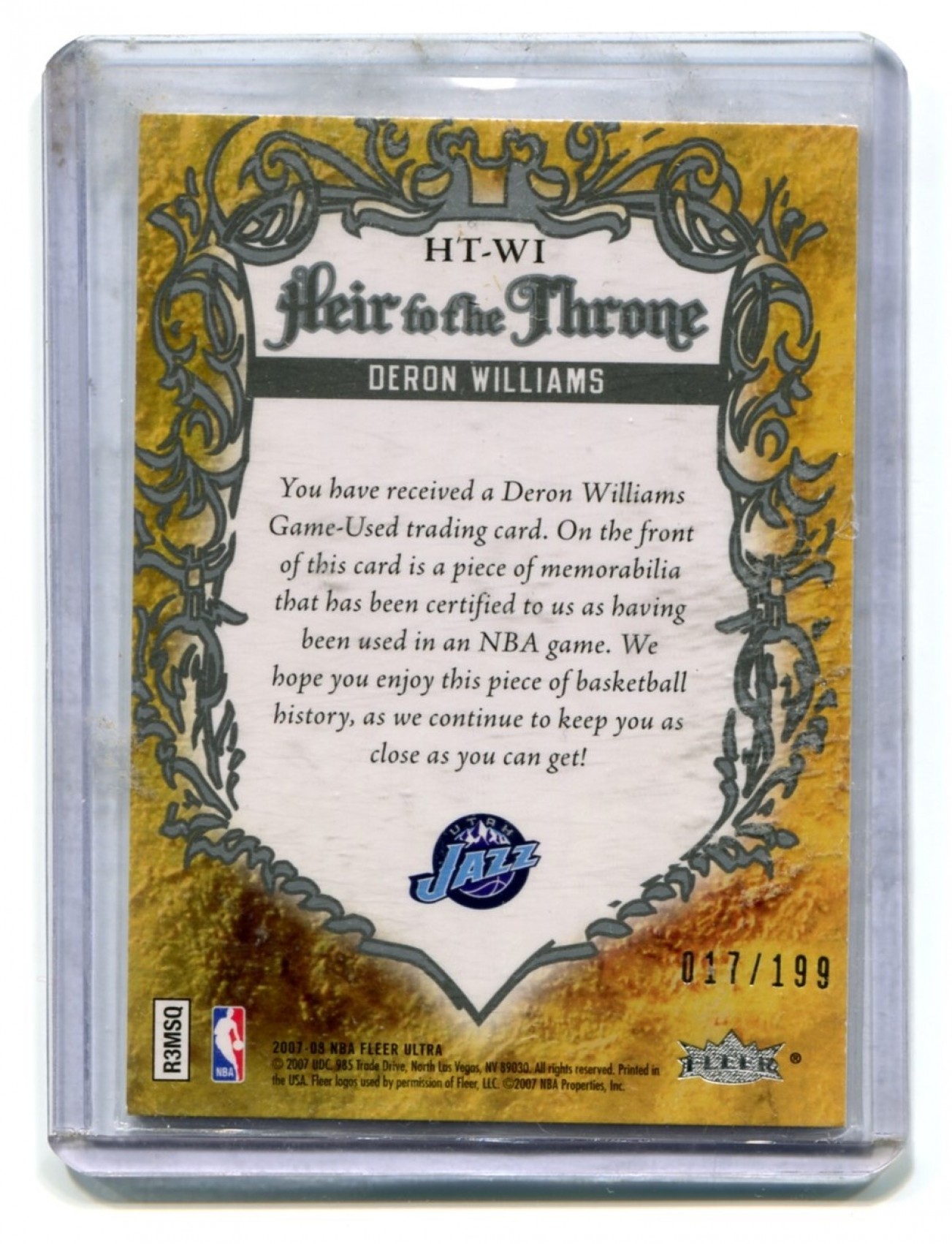 This listing is for 2007-08 Ultra SE Heir to the Throne Jersey #HTWI Deron Williams 017/199 - Utah Jazz.