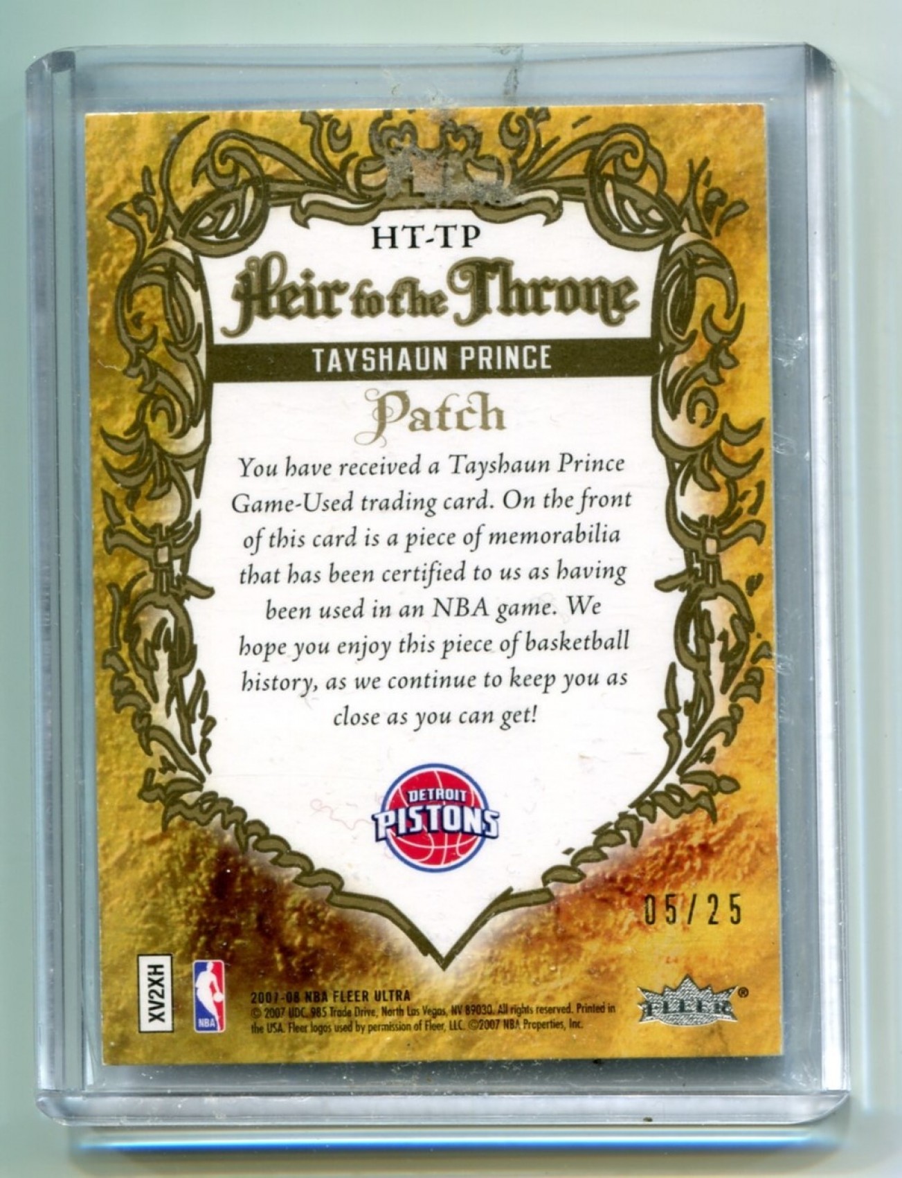 This listing is for 2007-08 Ultra SE Heir to the Throne Patch #HTTP Tayshaun Prince 05/25 - Detroit Pistons.