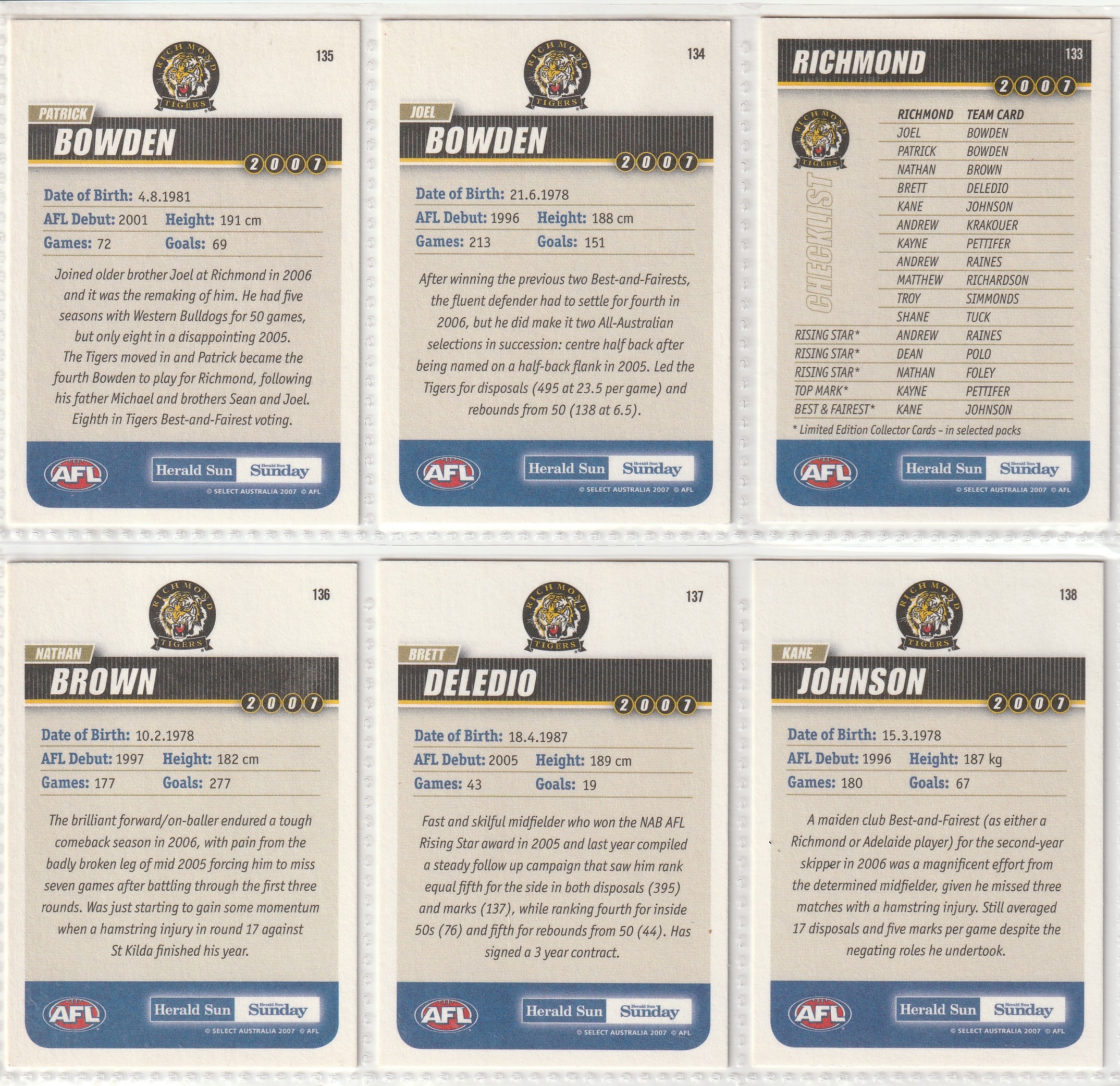 2007 AFL SELECT Herald Sun - 135 PATRICK BOWDEN 🏉🔴⚪🏉