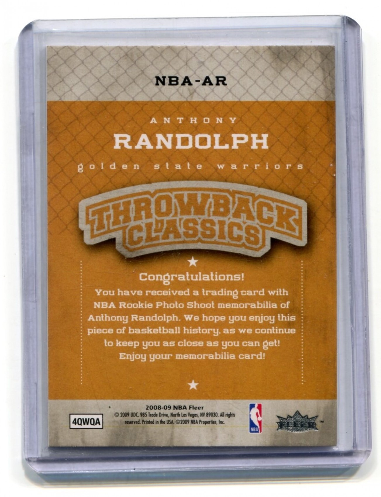 This listing is for 2008-09 Fleer NBA Classics #NBAAR Anthony Randolph - Golden State Warriors.