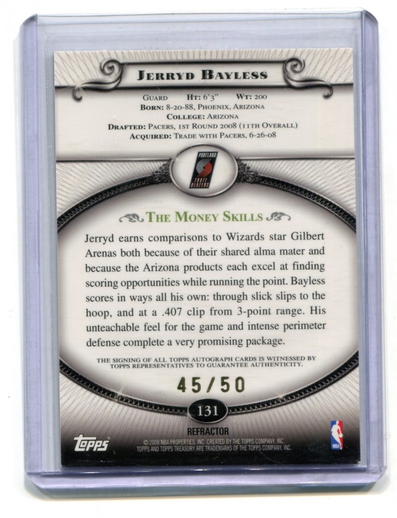 This listing is for 2008-09 Topps Treasury Rookie Autographs Refractors Bronze #131 Jerryd Bayless - Trial Blazers serially #'d 45/50