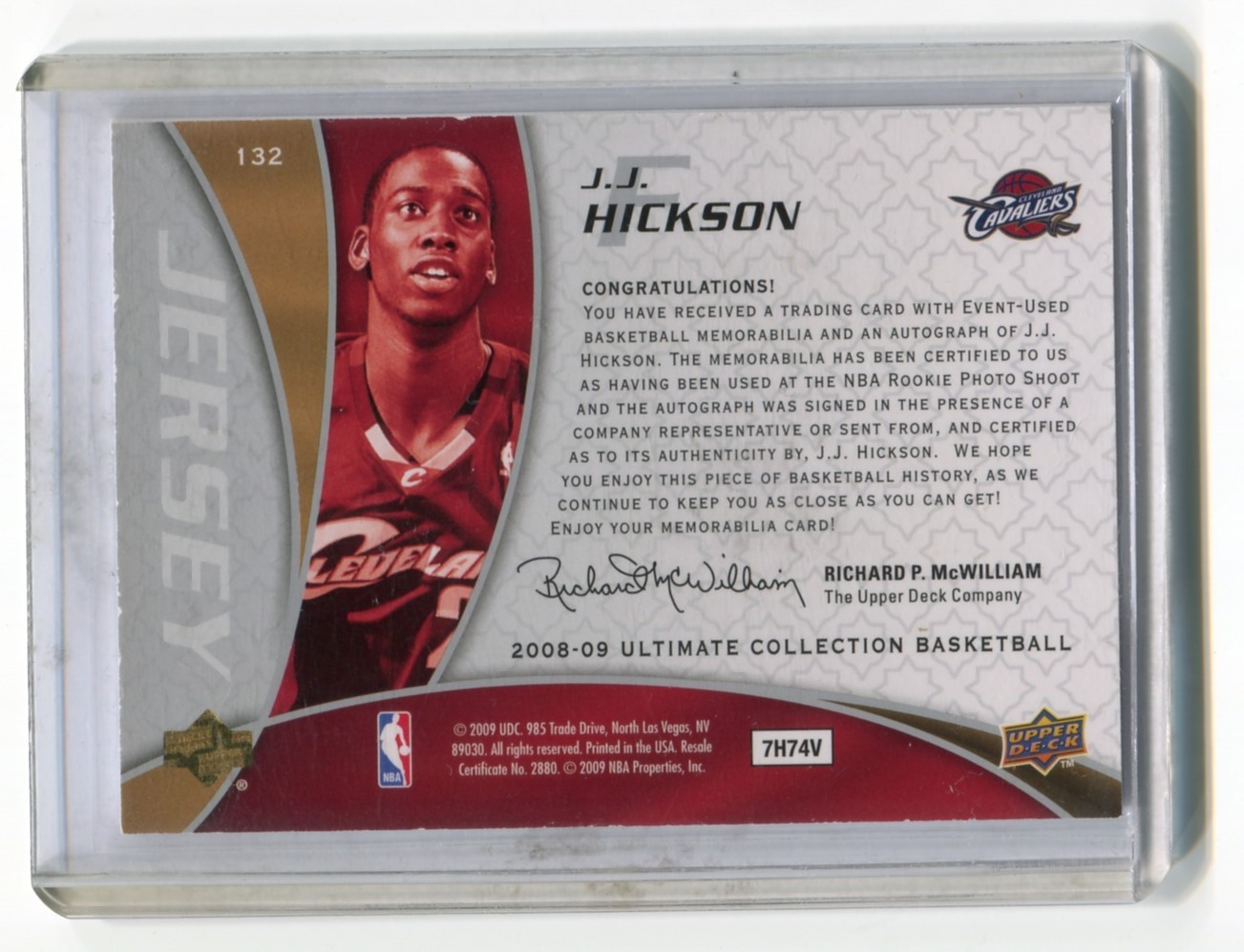 This listing is for 2008-09 Ultimate Collection Rookies Silver #132 J.J. Hickson JSY AU numbered 48/60.