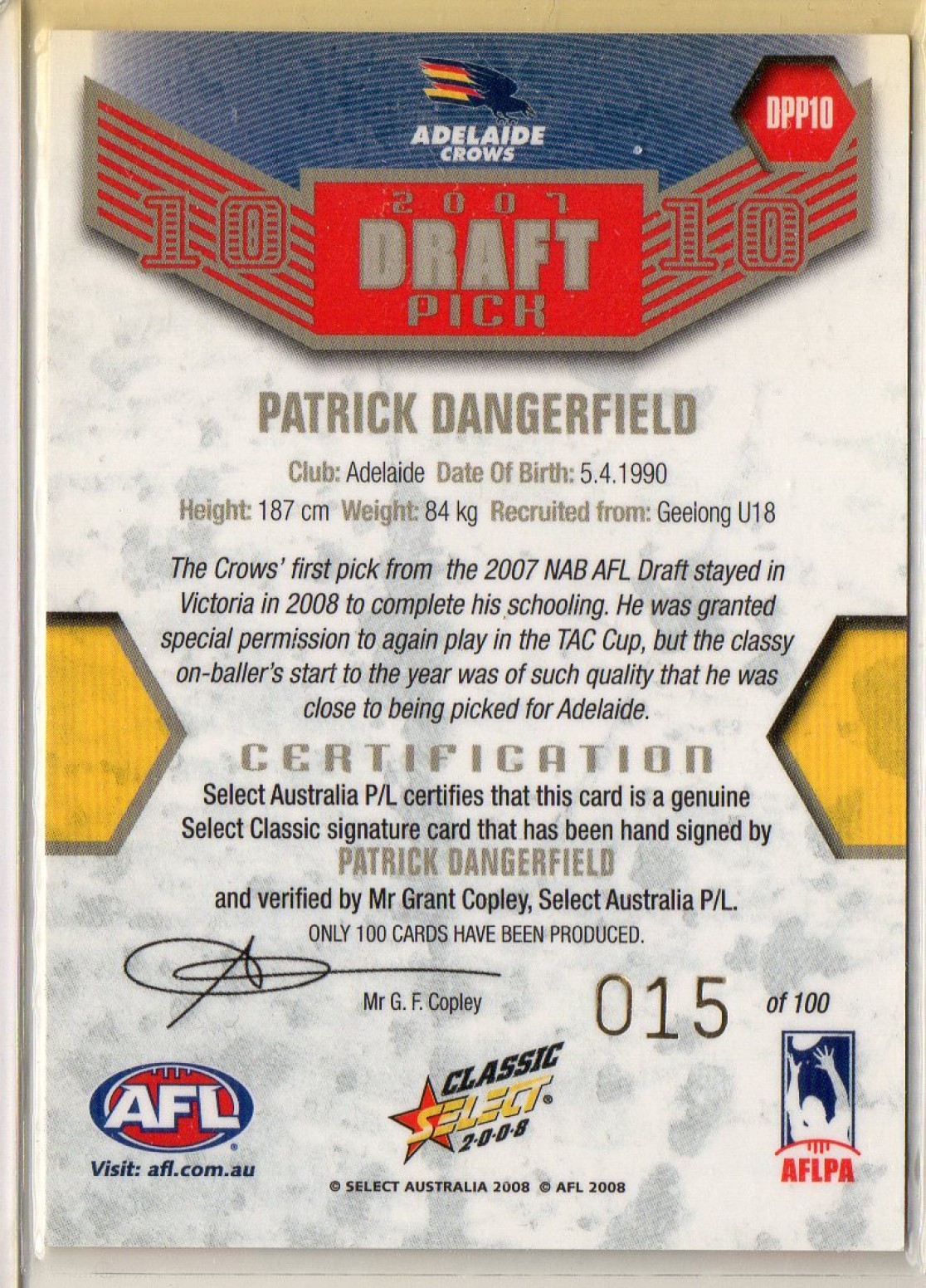 Item: 2008 Classic Draft Pick Platinum Signature DPP10 Patrick Dangerfield 015 of 100 - Adelaide Crows / Geelong Cats