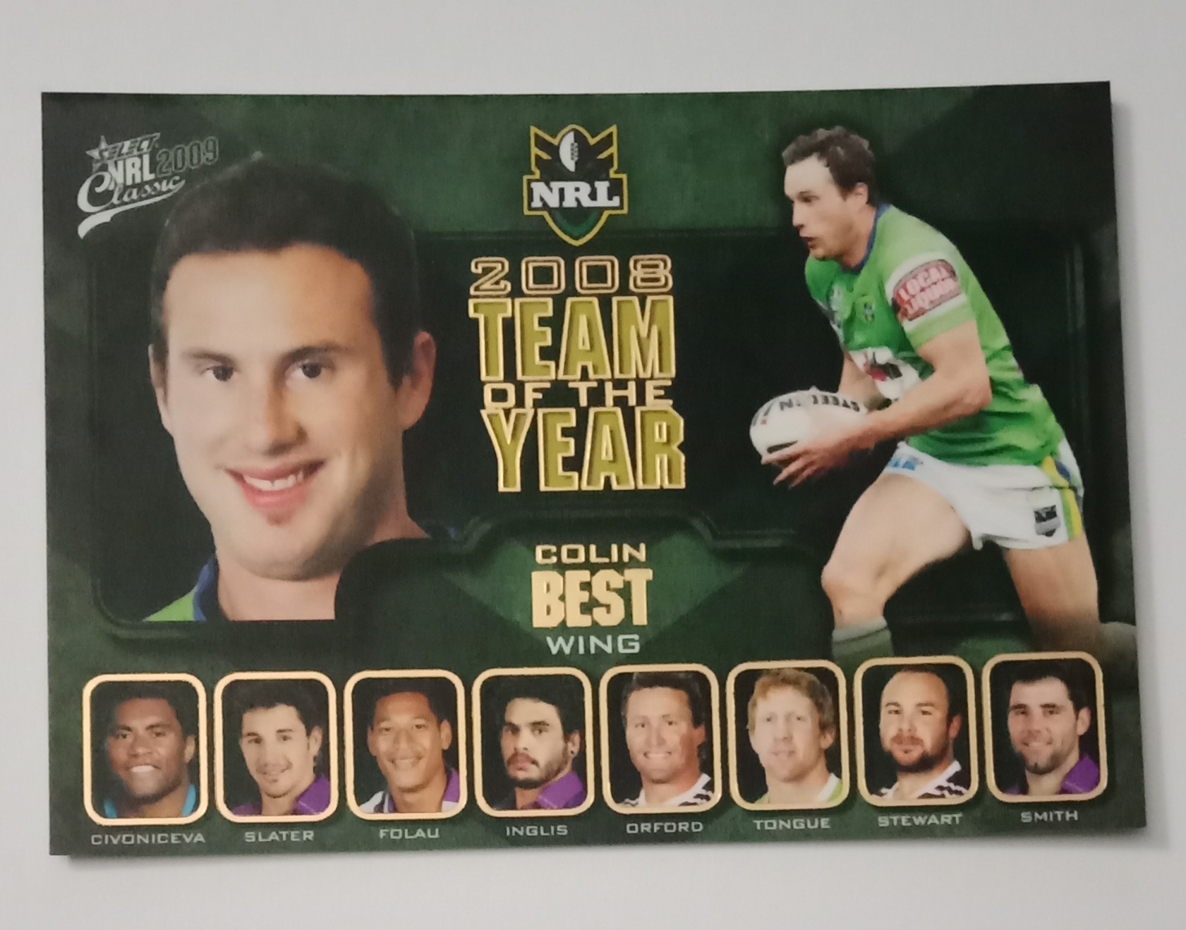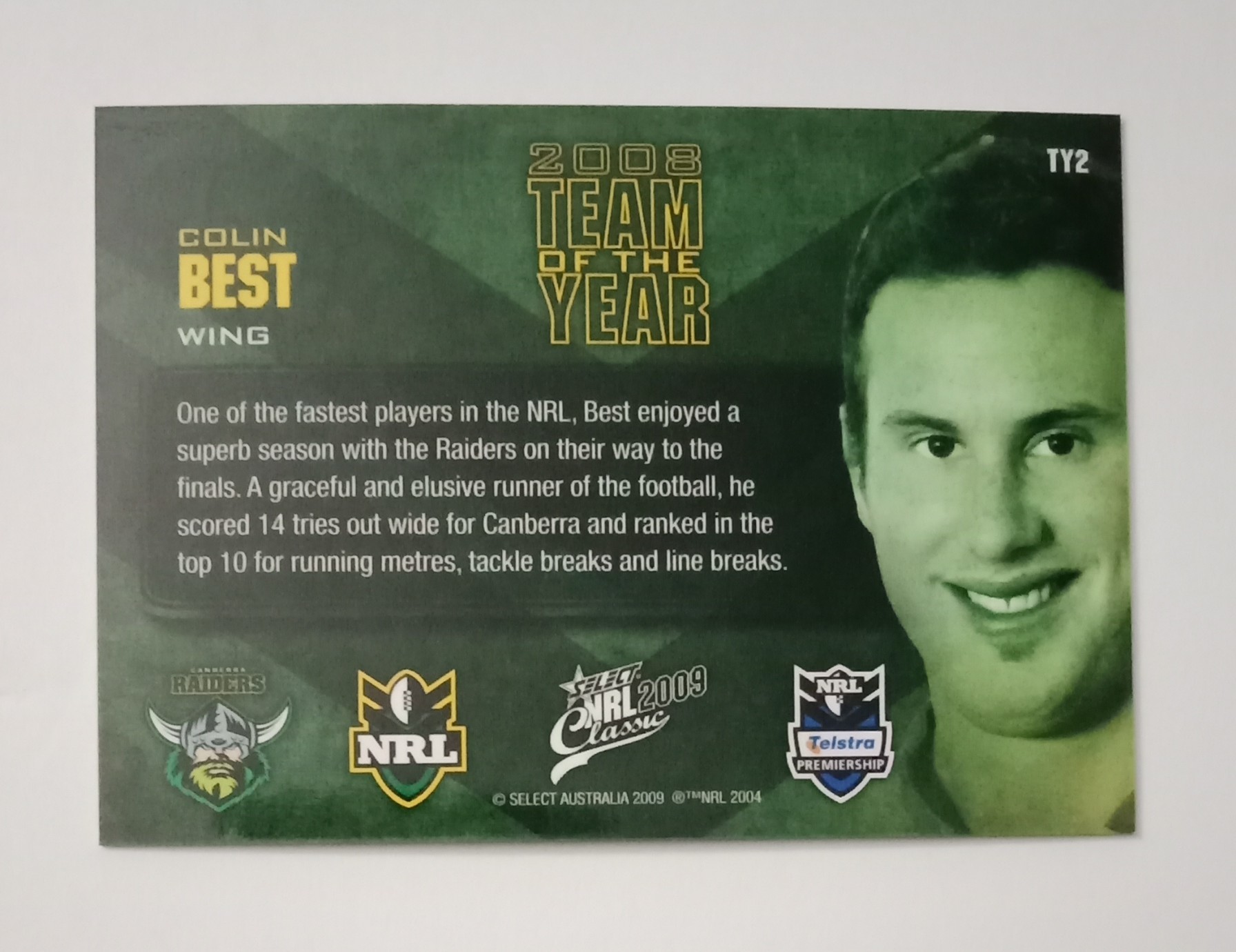 2009 NRL SELECT CLASSIC TEAM OF THE YEAR CARD #TY2 COLIN BEST CANBERRA RAIDERS