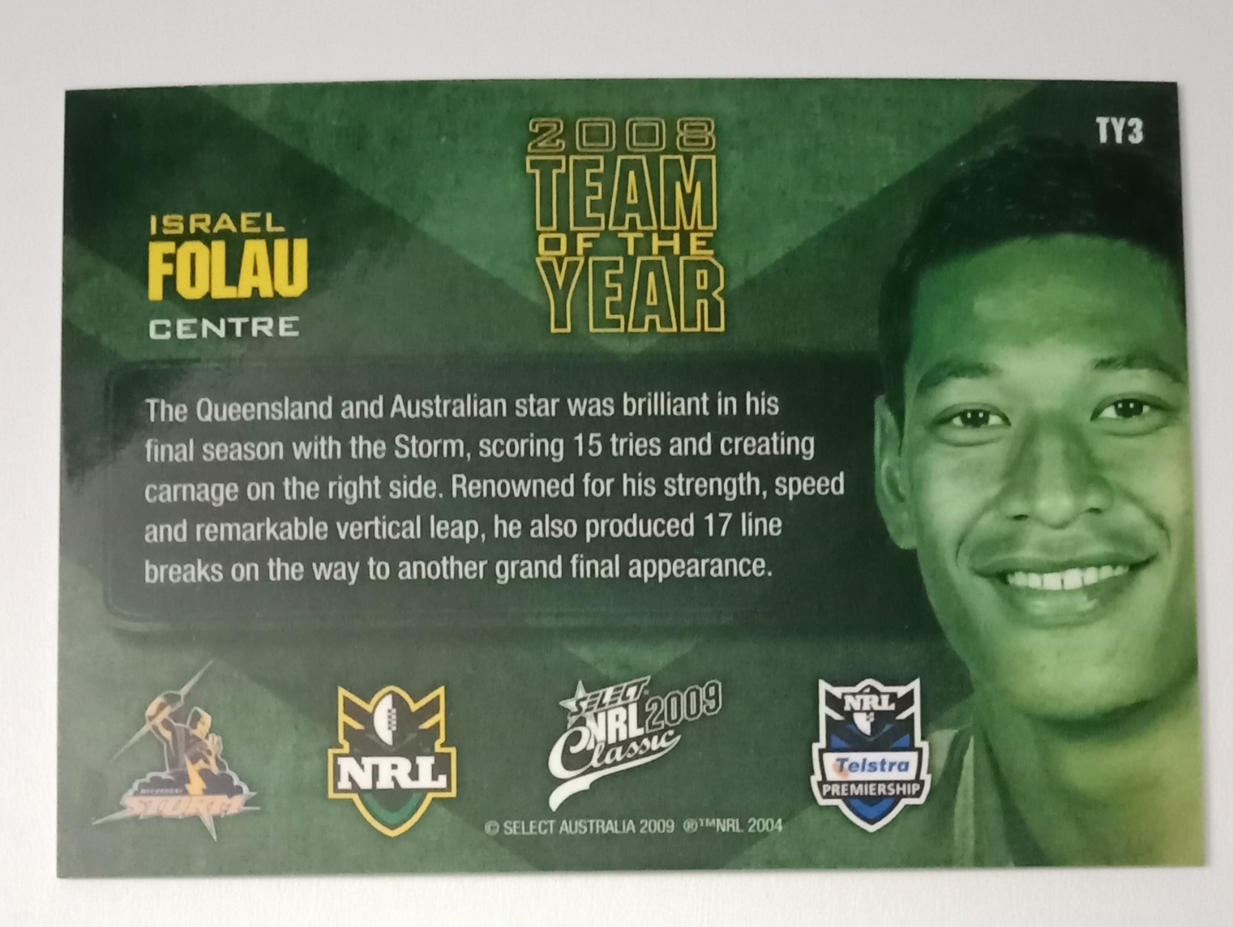 2009 NRL SELECT CLASSIC TEAM OF THE YEAR CARD #TY3 ISRAEL FOLAU MELBOURNE STORM