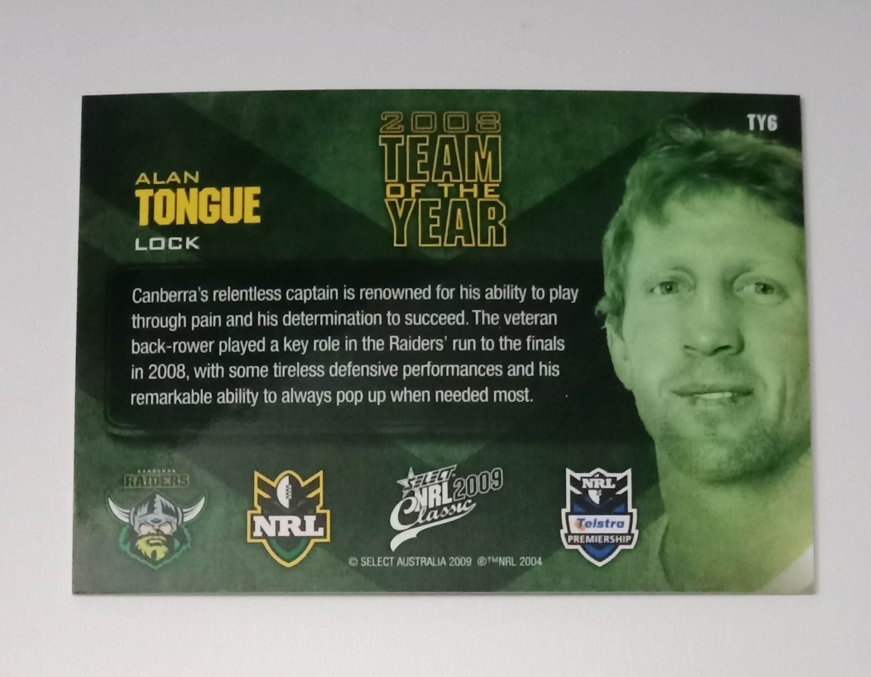 2009 NRL SELECT CLASSIC TEAM OF THE YEAR CARD #TY6 ALAN TONGUE CANBERRA RAIDERS