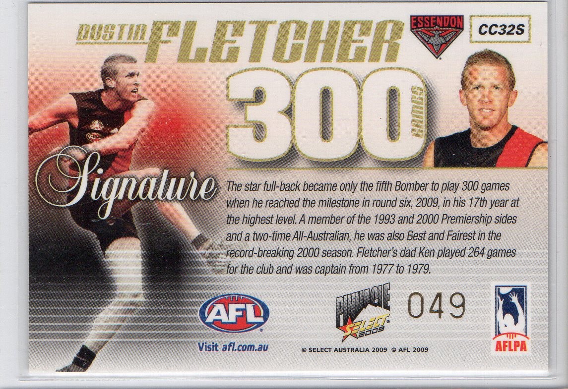 2009 Select Pinnacle 300 Games Case Card Signature CC32S Dustin Fletcher 49/50 - Essendon Bombers