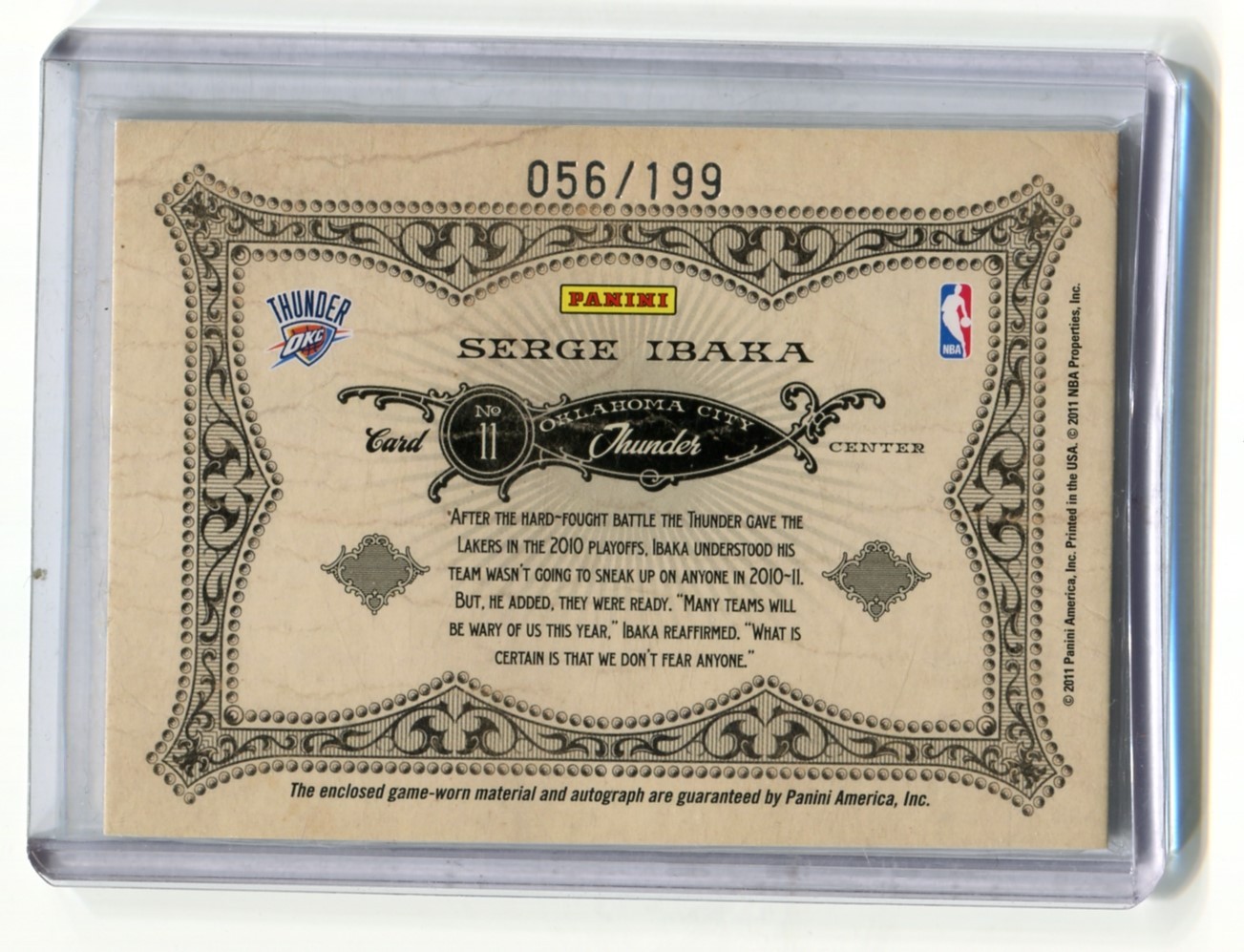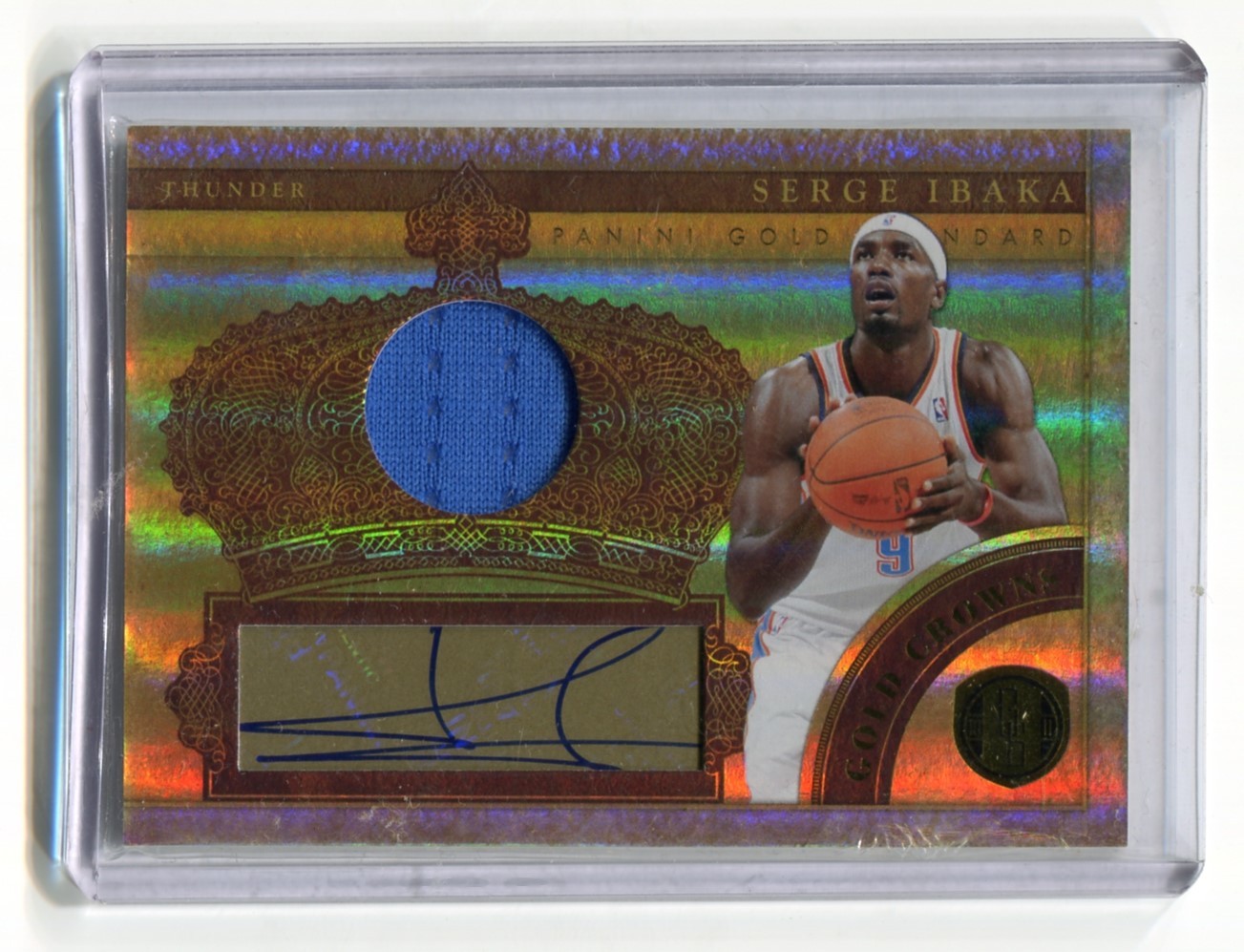 This listing is for 2010-11 Panini Gold Standard Gold Crowns Materials Signatures #11 Serge Ibaka /199 - Oklahoma City Thunder.