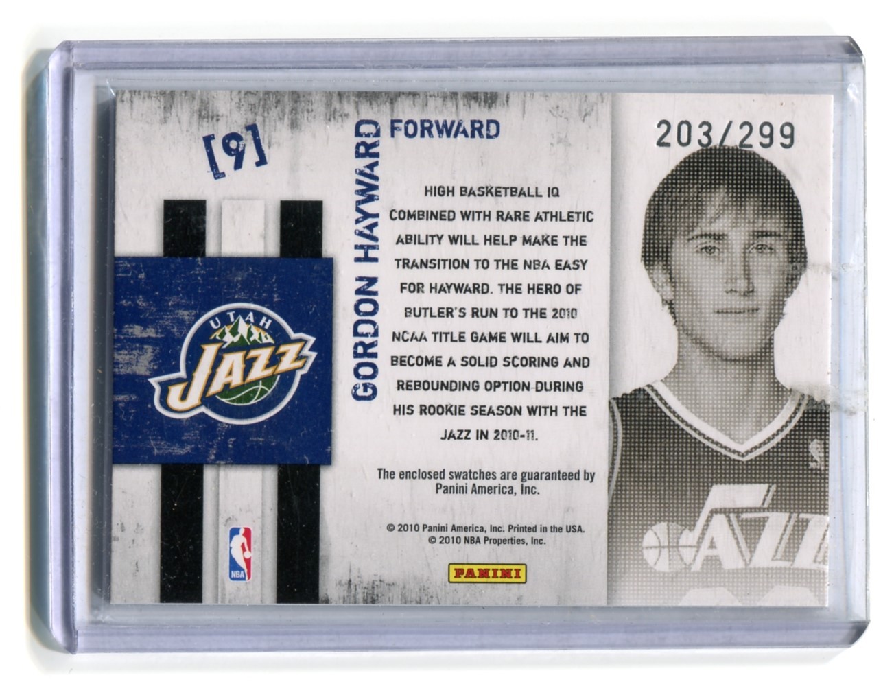 This listing is for 2010-11 Rookies and Stars Longevity Freshman Orientation Materials #9 Gordon Hayward 203/299 - Utah Jazz.