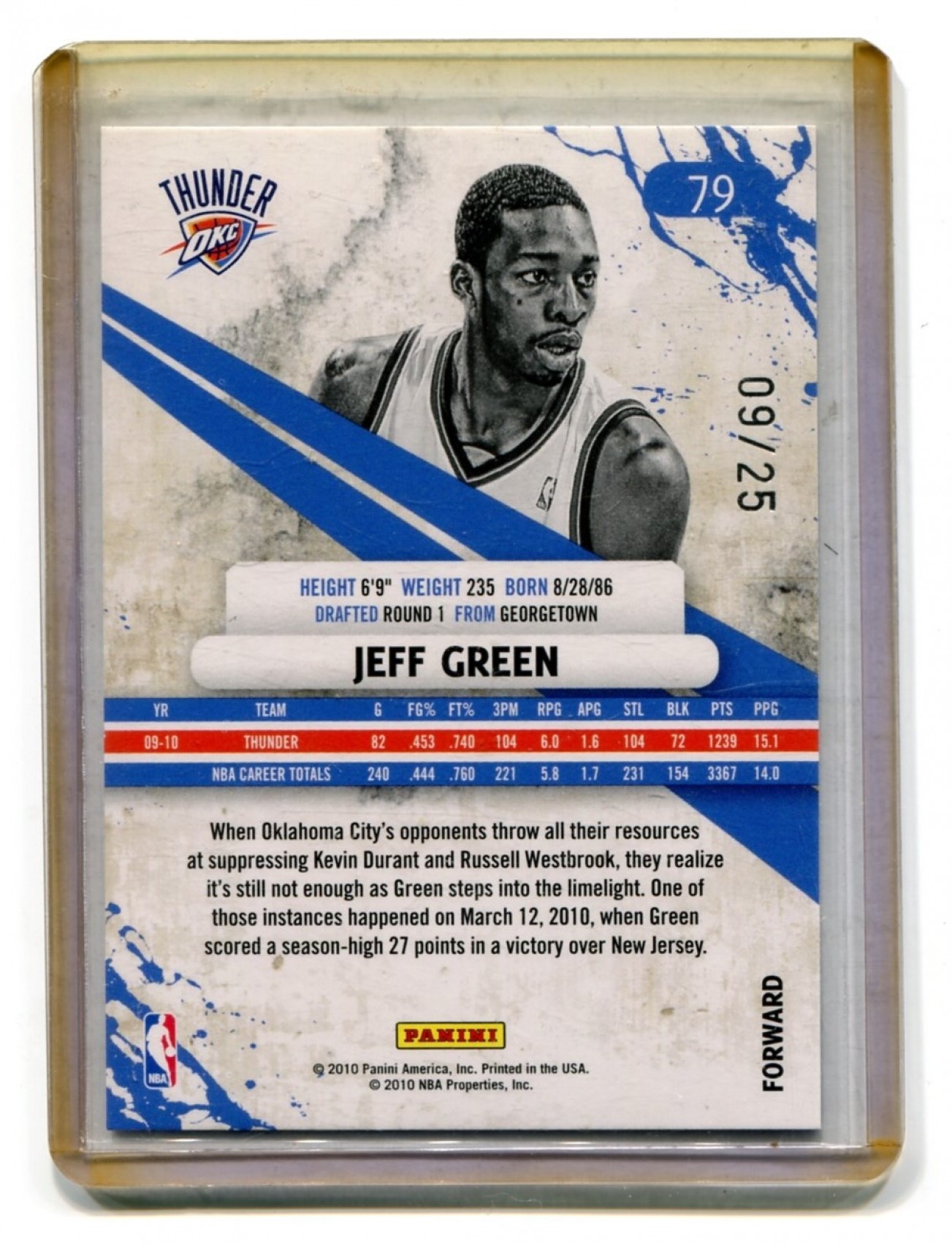 This listing is for 2010-11 Rookies and Stars Longevity Sapphire #79 Jeff Green 09/25 - Oklahoma City Thunder.
