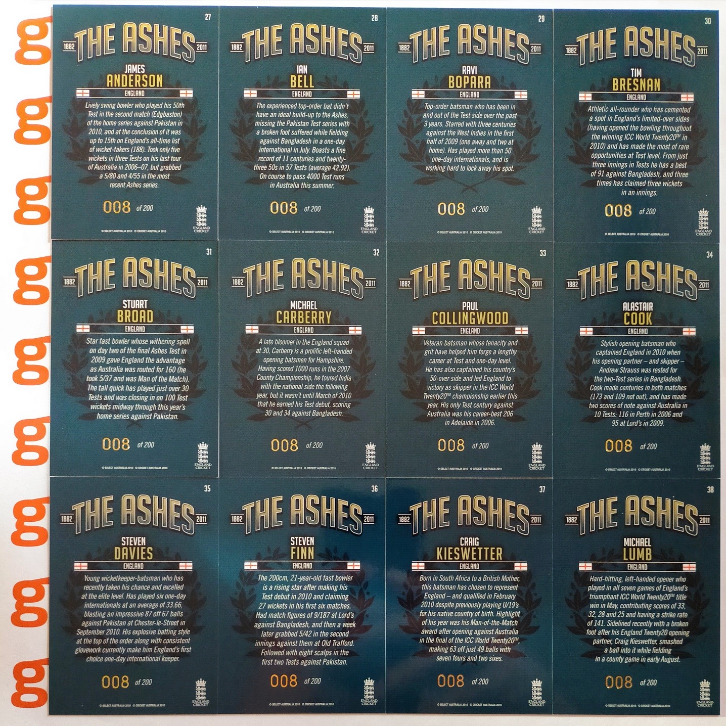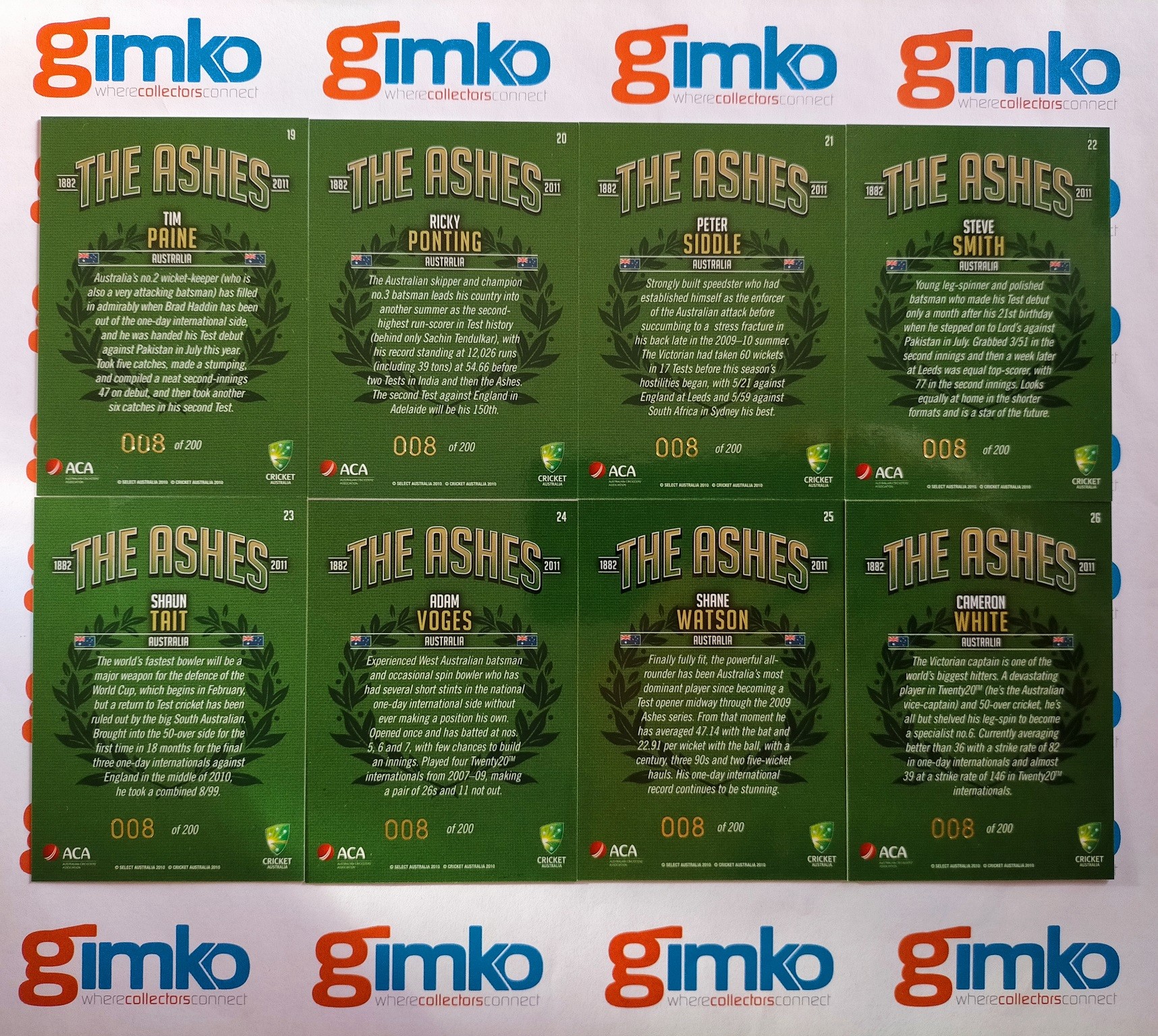 2010-11 SELECT CRICKET LIMITED EDITION THE ASHES SERIES COLLECTION - 50 CARD SET #008/200 *LOW NUMBERED*