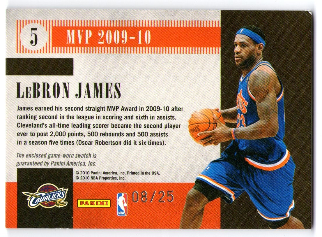 2010/11 PANINI TIMELESS TREASURES LEBRON JAMES TRIPLE JERSEY PATCH MVP MATERIALS 08/25 *Small Dink*
