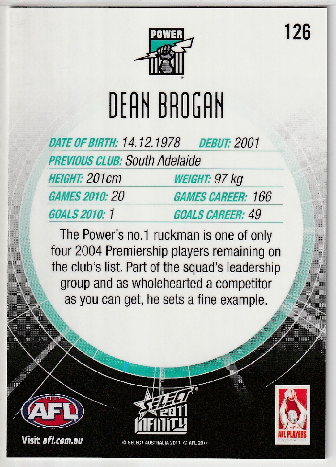 2011 AFL SELECT INFINITY #126 DEAN BROGAN 🔥🏉 🔥 GEM/MINT CONDITION 💯⚡