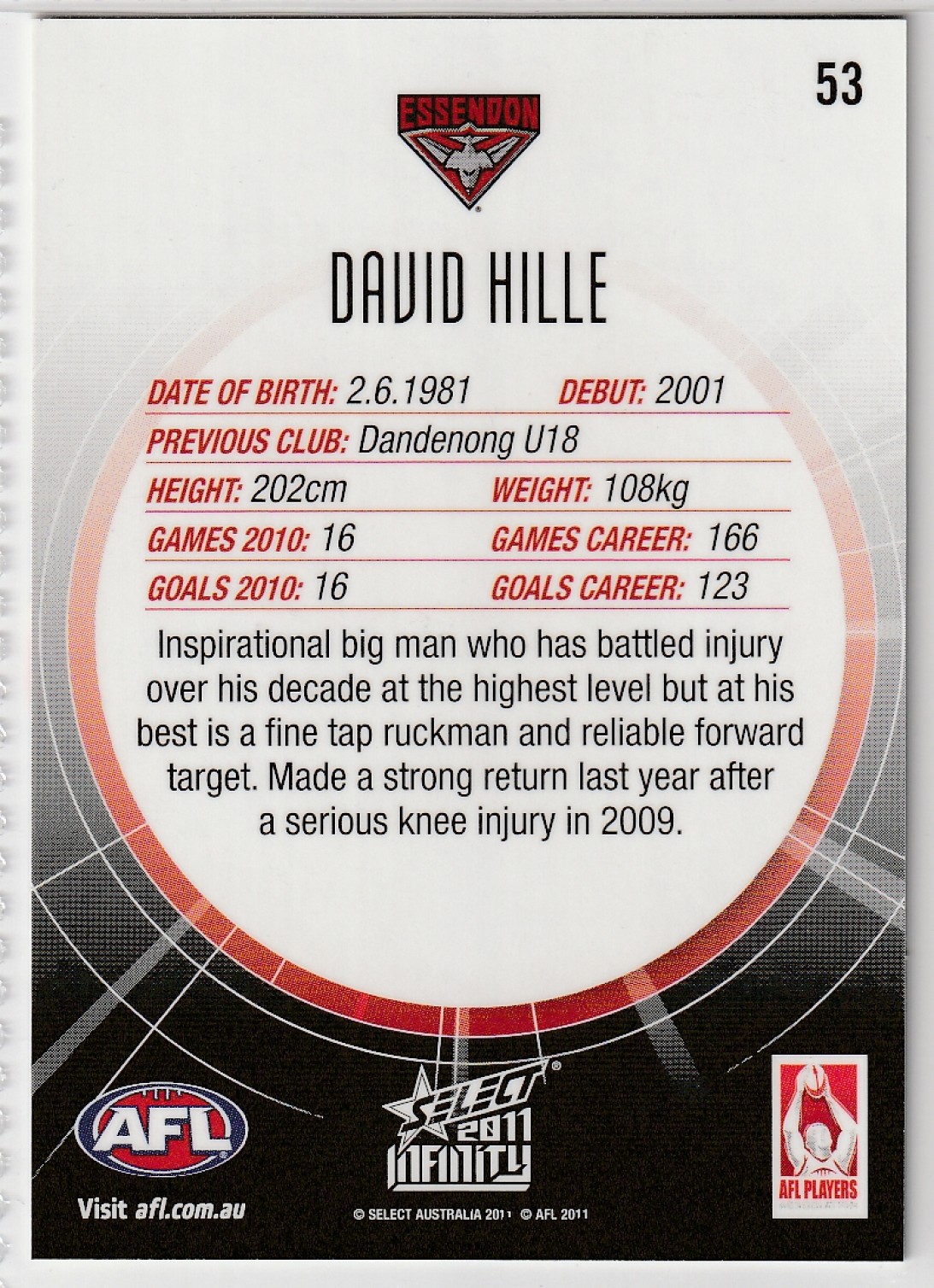 2011 AFL SELECT INFINITY #53 DAVID HILLE 🔥🏉 🔥 GEM/MINT CONDITION 💯⚡