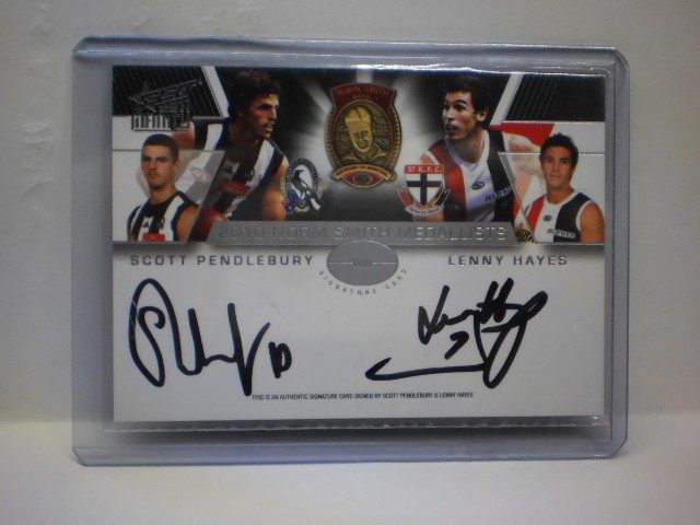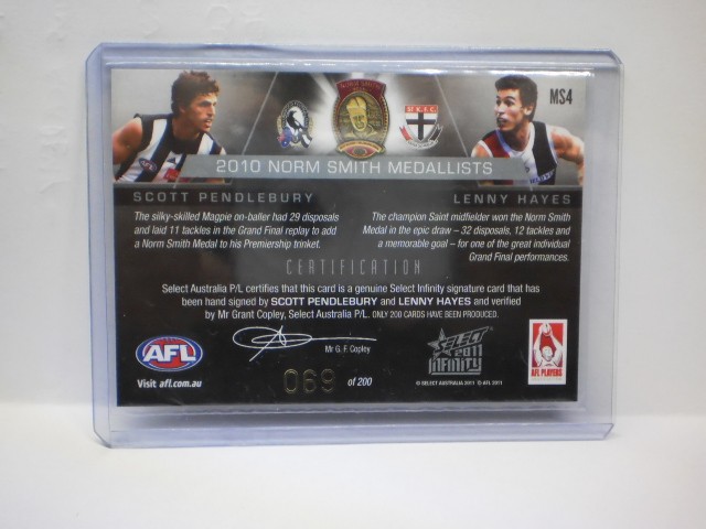 2011 AFL Select Infinity Norm Smith Medallists Signature Card MS4 Scott Pendlebury / Lenny Hayes #69/200