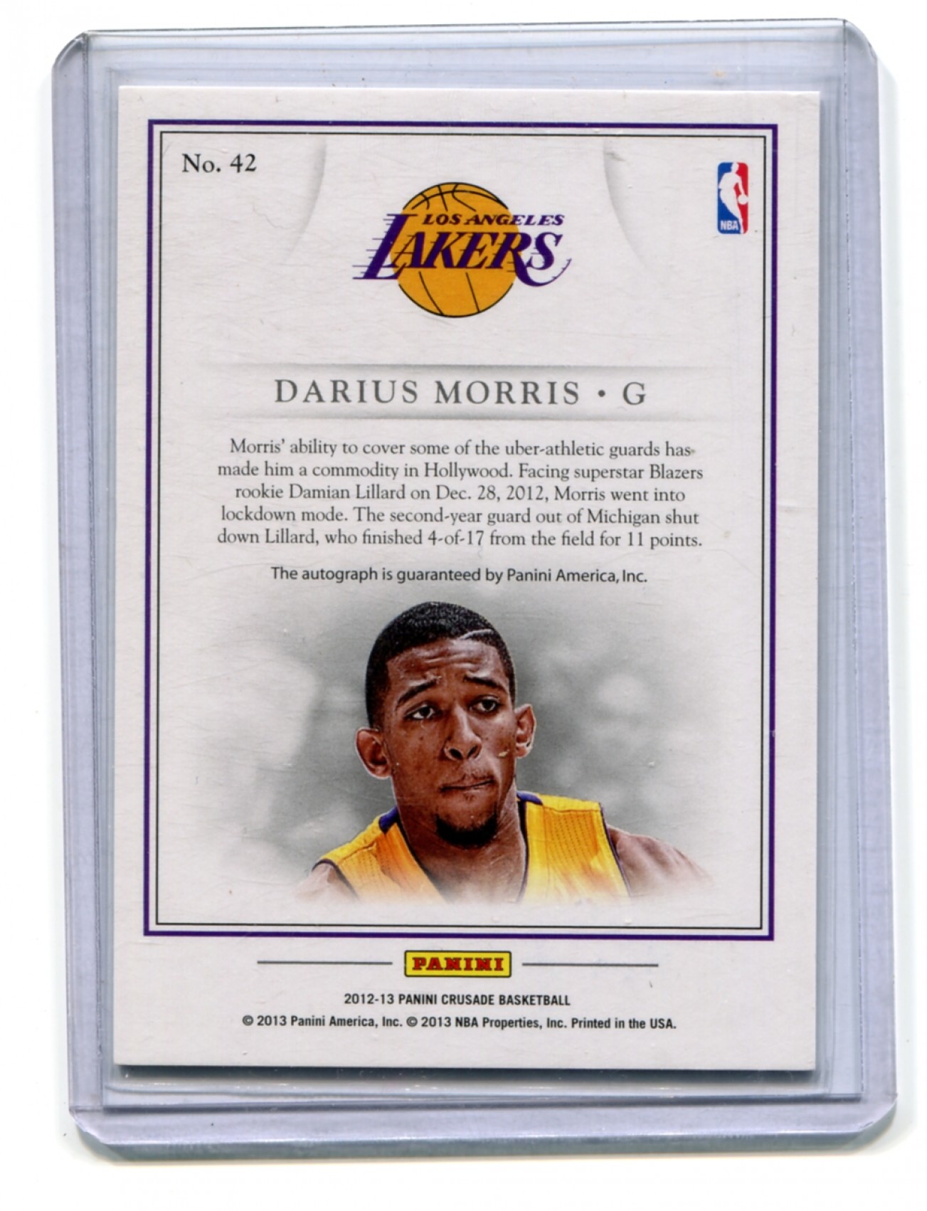 This listing is for 2012-13 Panini Crusade Quest Autographs #42 Darius Morris - Los Angeles Lakers.