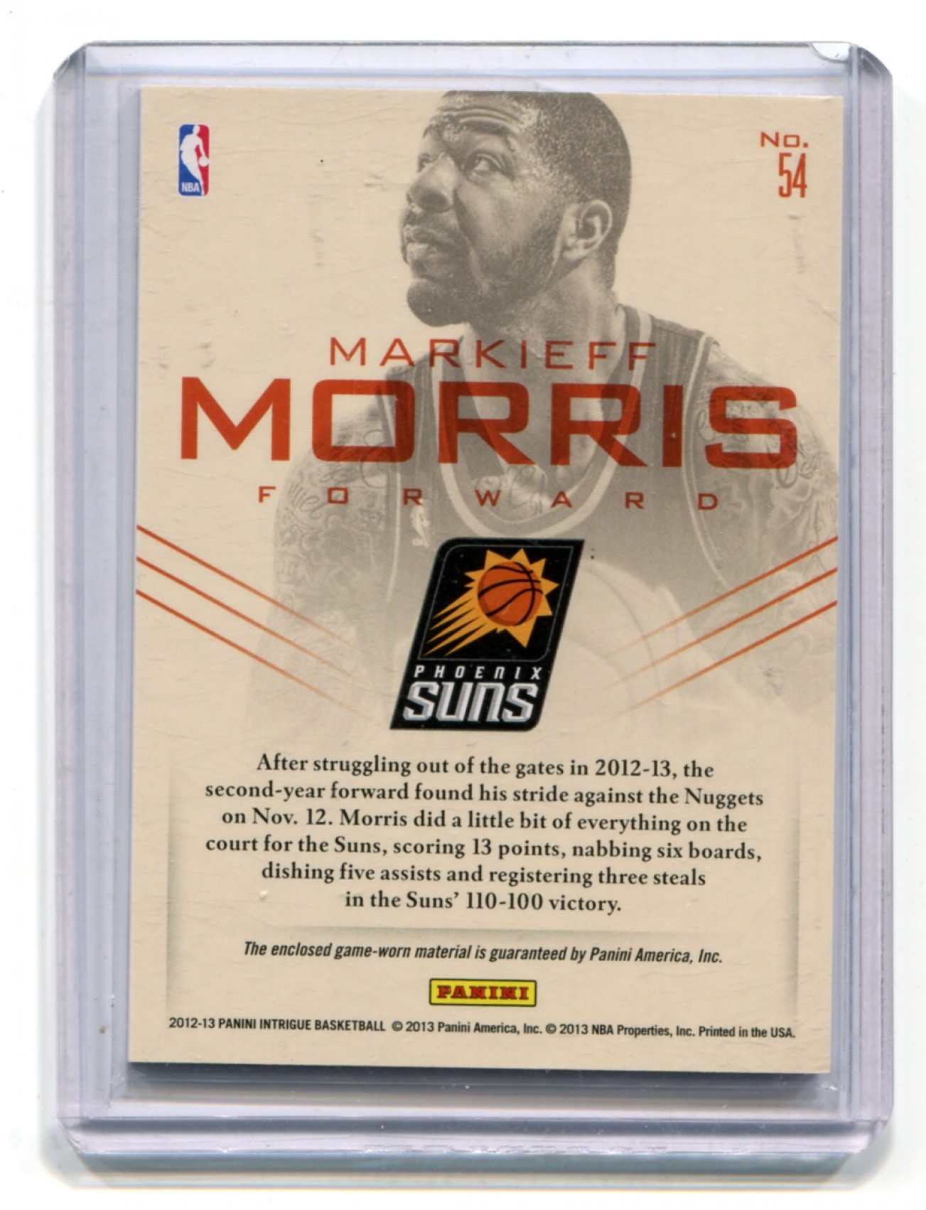 This listing is for 2012-13 Panini Intrigue Top Flight Unis #54 Markieff Morris 05/99 - Phoenix Suns.