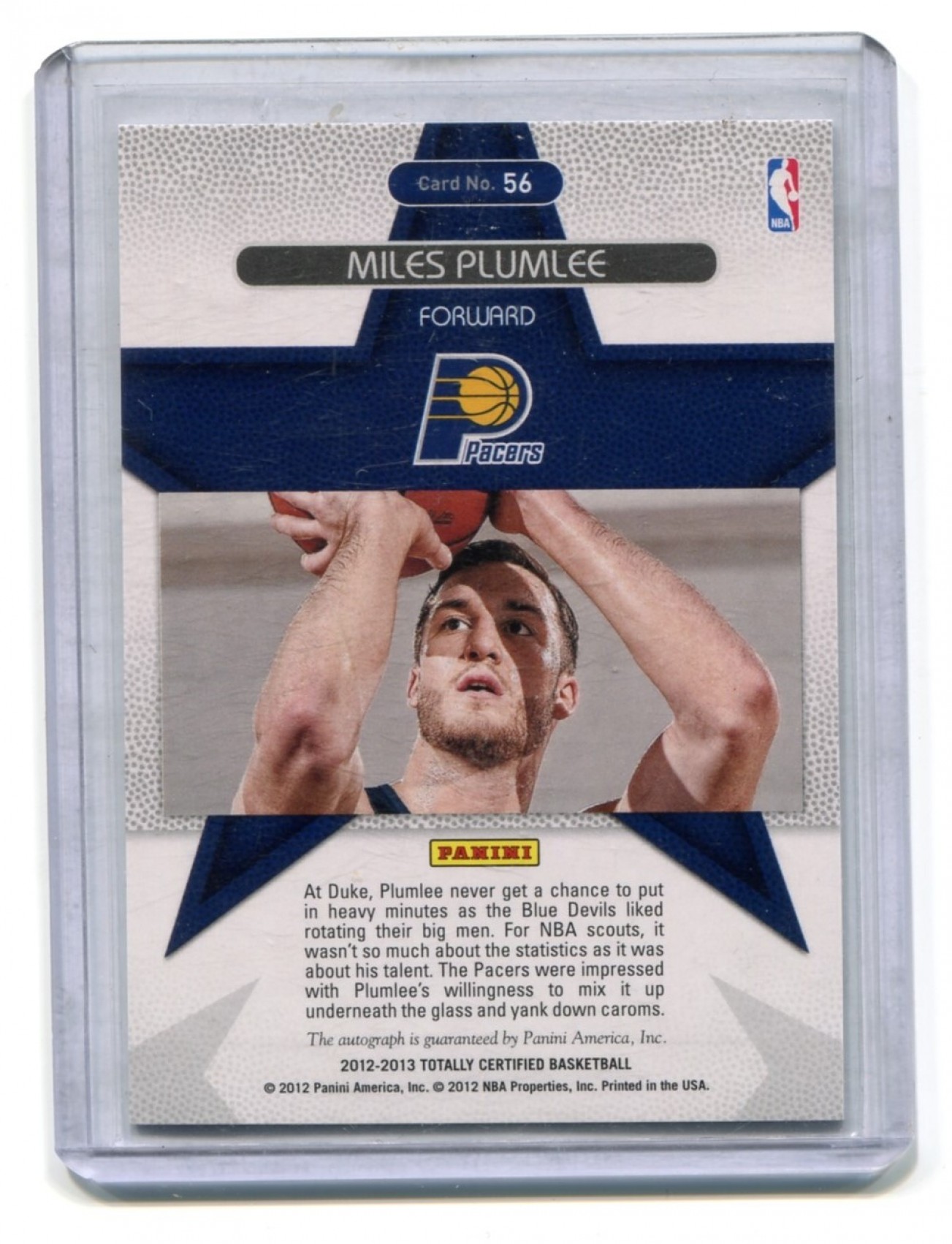 This listing is for 2012-13 Totally Certified Rookie Roll Call Autographs #56 Miles Plumlee - Indiana Pacers.