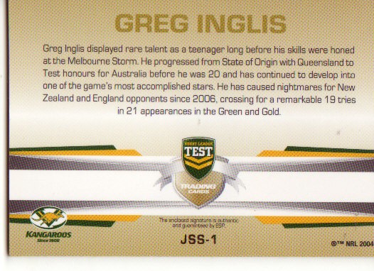 2012 ESP LIMITED EDITION JERSEY SIGNATURE JSS1 GREG INGLIS AUSTRALIA