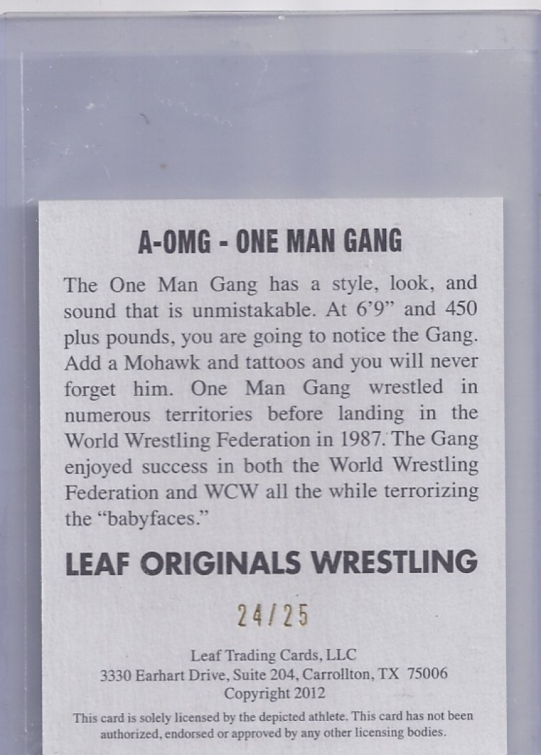 2012 LEAF WRESTLING ORIGINALS On Card Autograph Card A-OMG - ONE MAN GANG Yellow 24/25 Inscription