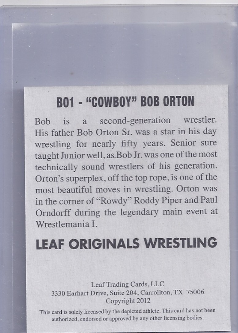 2012 LEAF WRESTLING ORIGINALS On Card Autograph Card BO1 - COWBOY BOB ORTON