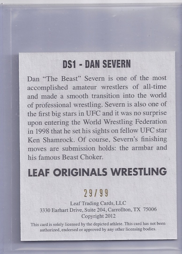 2012 LEAF WRESTLING ORIGINALS On Card Autograph Card DS1 - DAN SEVERN Yellow 29/99