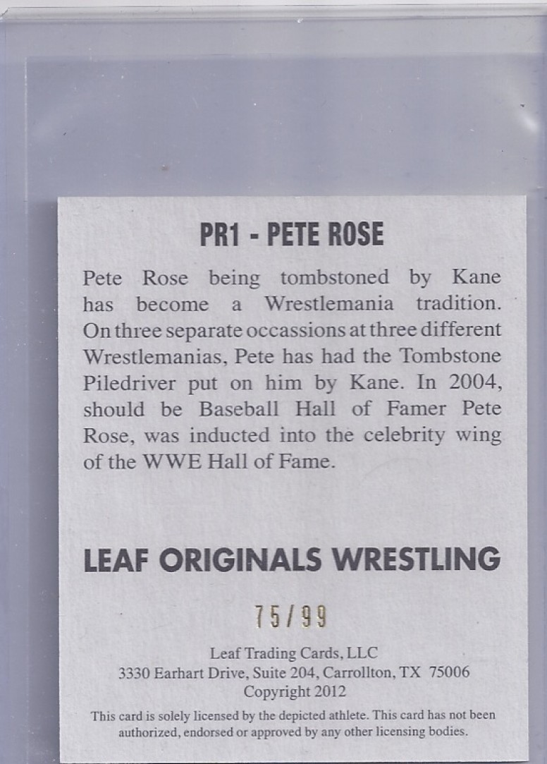 2012 LEAF WRESTLING ORIGINALS On Card Autograph Card PR1 - PETE ROSE Yellow 75/99