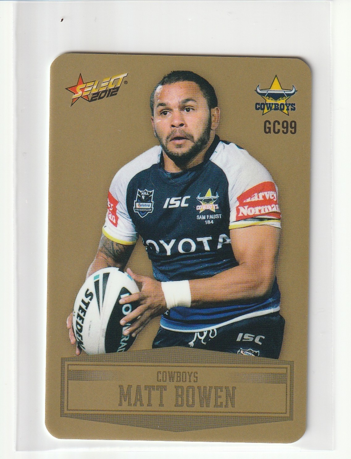 2012 NRL SELECT - GC99 MATT BOWEN - GOLD CARD 🏉🔥🏉