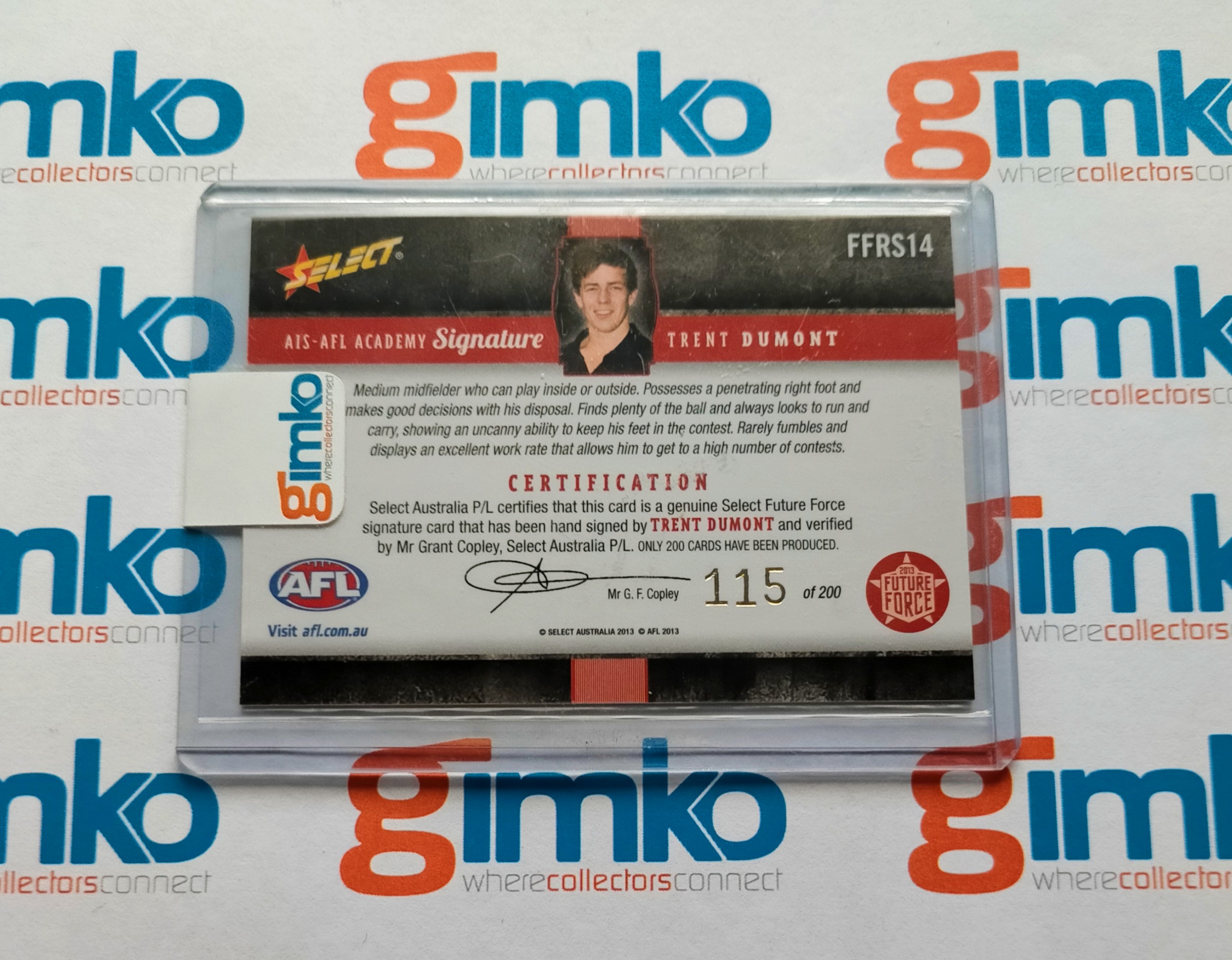 2013 AFL SELECT FUTURE FORCE RED SIGNATURE FFRS14 TRENT DUMONT - NORTH MELBOURNE KANGAROOS #115/200