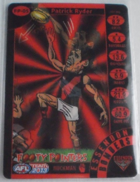 2013 AFL TEAMCOACH PATRICK RYDER FOOTY POINTERS CARD - ESSENDON BOMBERS