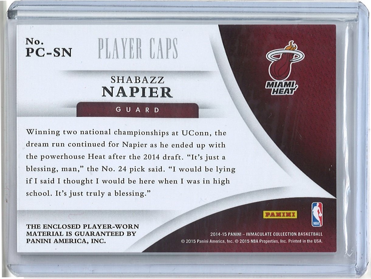 2014-15 PANINI IMMACULATE COLLECTION - CAP JERSEY #PC-SN - SHABAZZ NAPIER /38