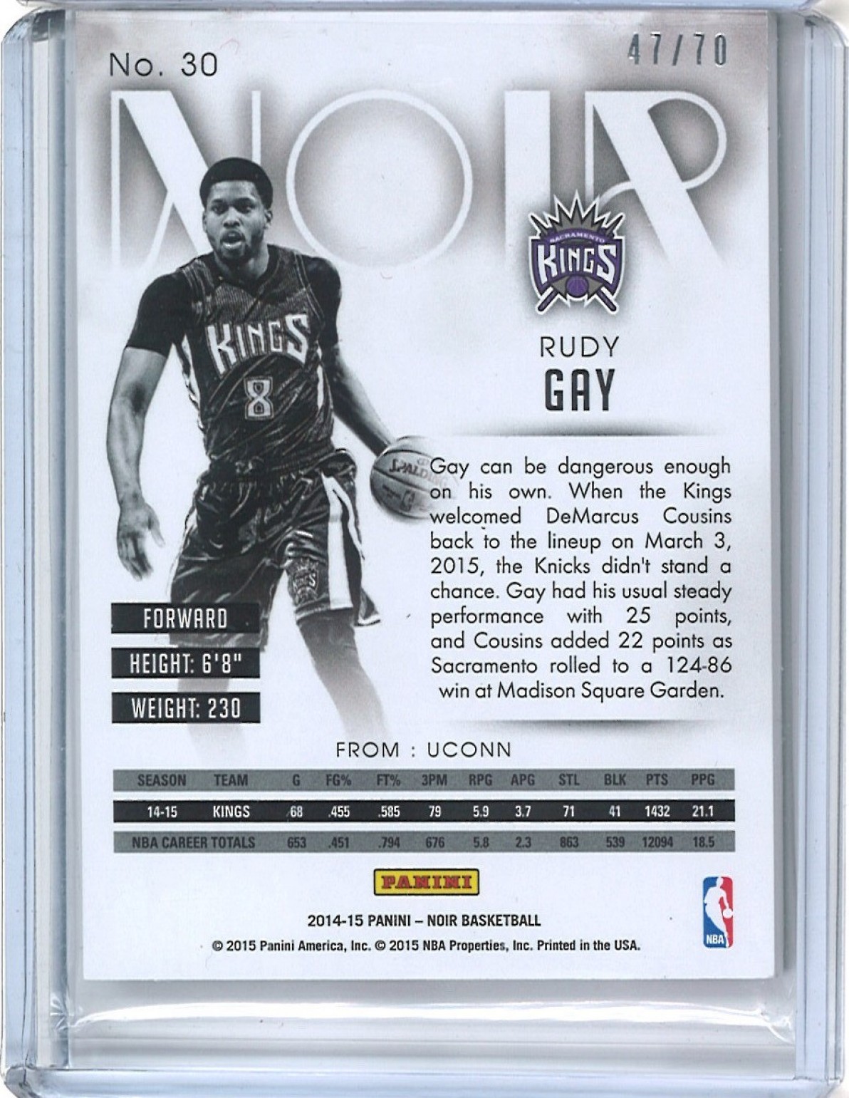2014-15 PANINI NOIR #30 - B&W - RUDY GAY /70