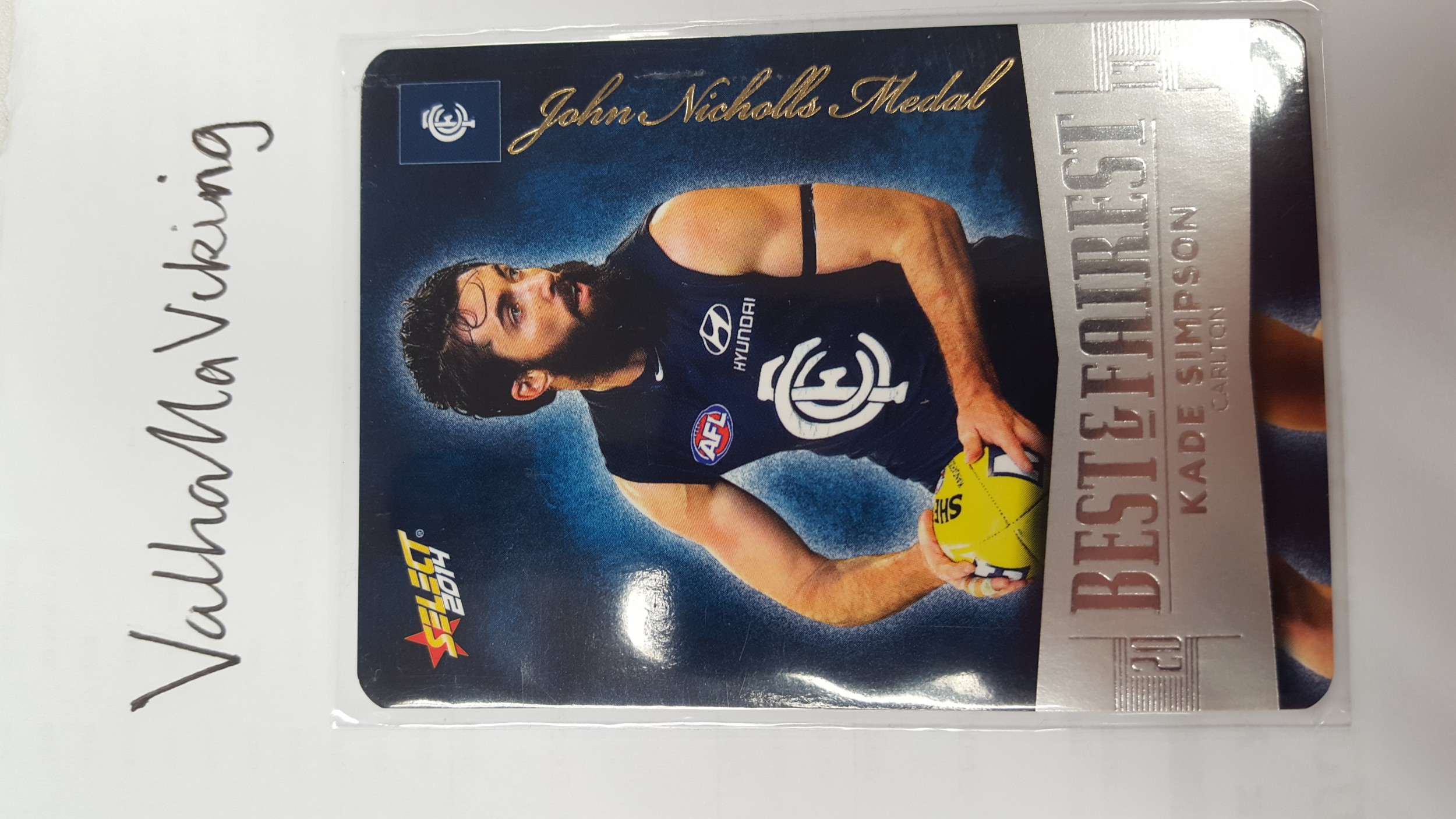 2014 AFL Select Champions Best & Fairest Kade Simpson Carlton Blues BF3