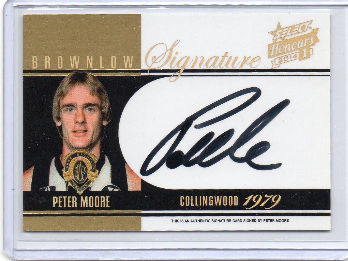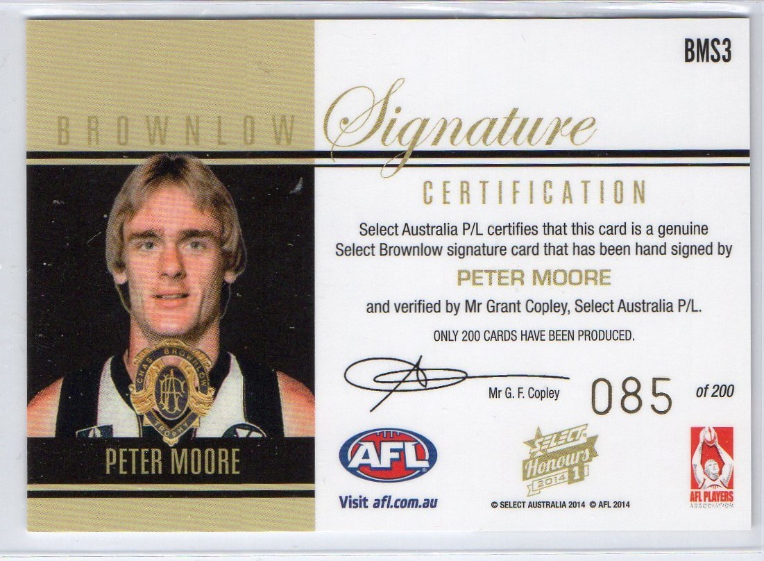 2014 AFL Select Honours Brownlow Signature BMS3 Peter Moore 085/200 - Collingwood Magpies