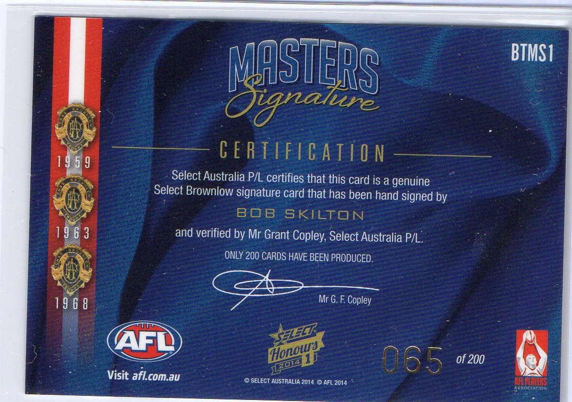Item: 2014 AFL Select Honours Triple Masters Signature BTMS1 Bob Skilton 065/200 - South Melbourne (Sydney Swans)