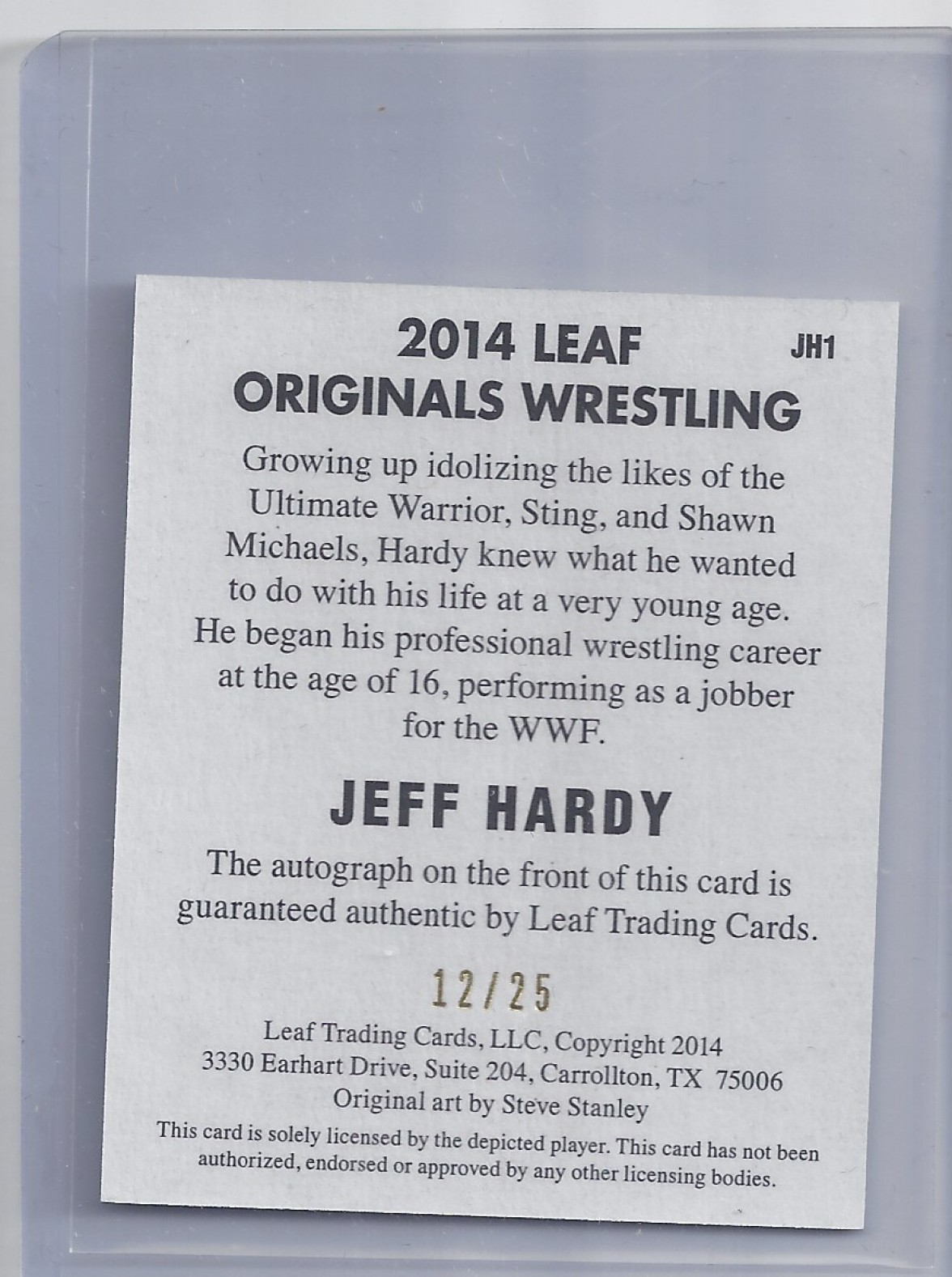 2014 LEAF WRESTLING ORIGINALS On Card Autograph Card JH1 - JEFF HARDY Blue 12/25