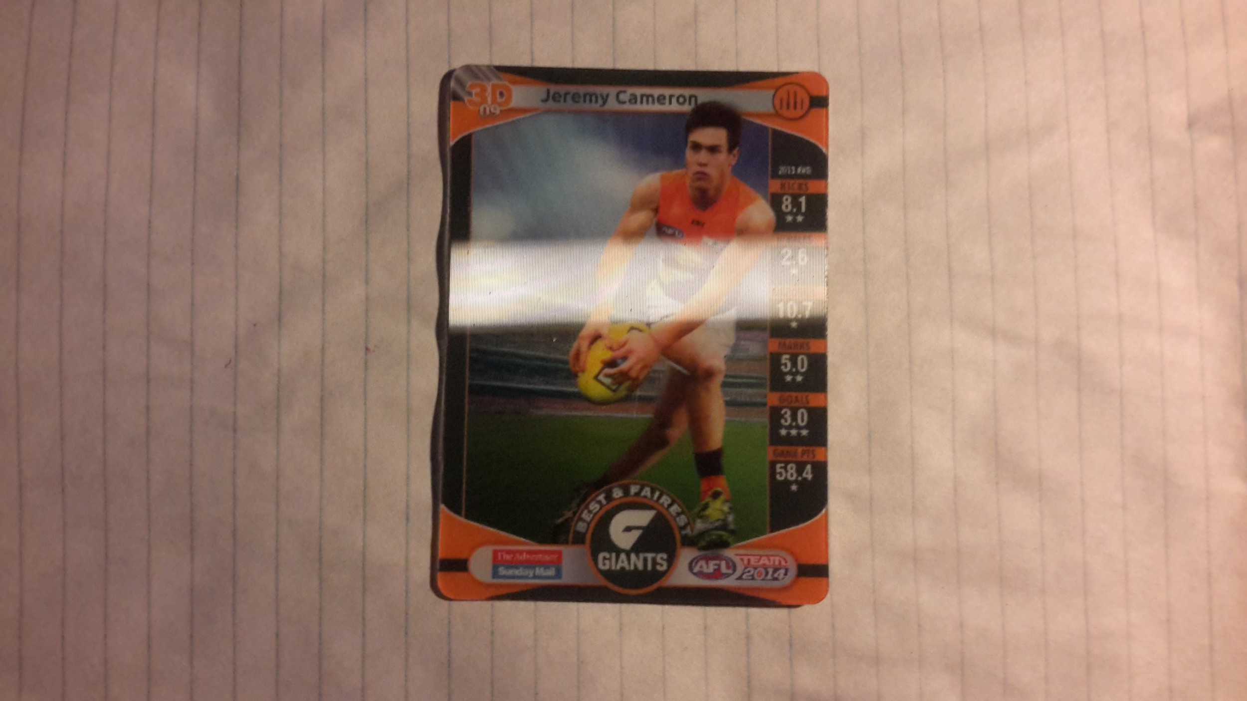 2014 TeamCoach The Advertiser Jeremy Cameron Best and Fairest 3D 09