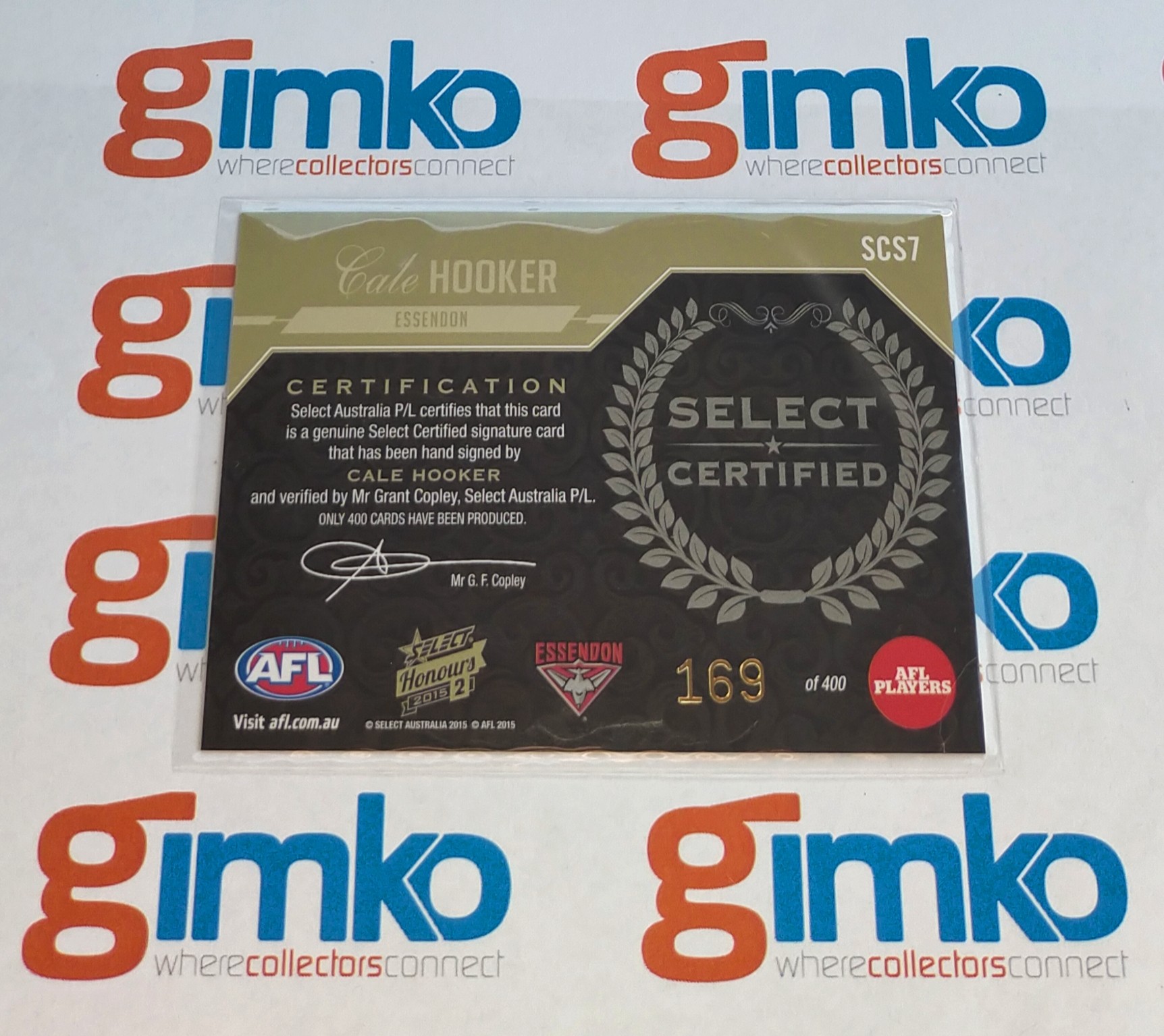 2015 AFL SELECT HONOURS CERTIFIED SIGNATURE SCS7 CALE HOOKER - ESSENDON BOMBERS #169/400