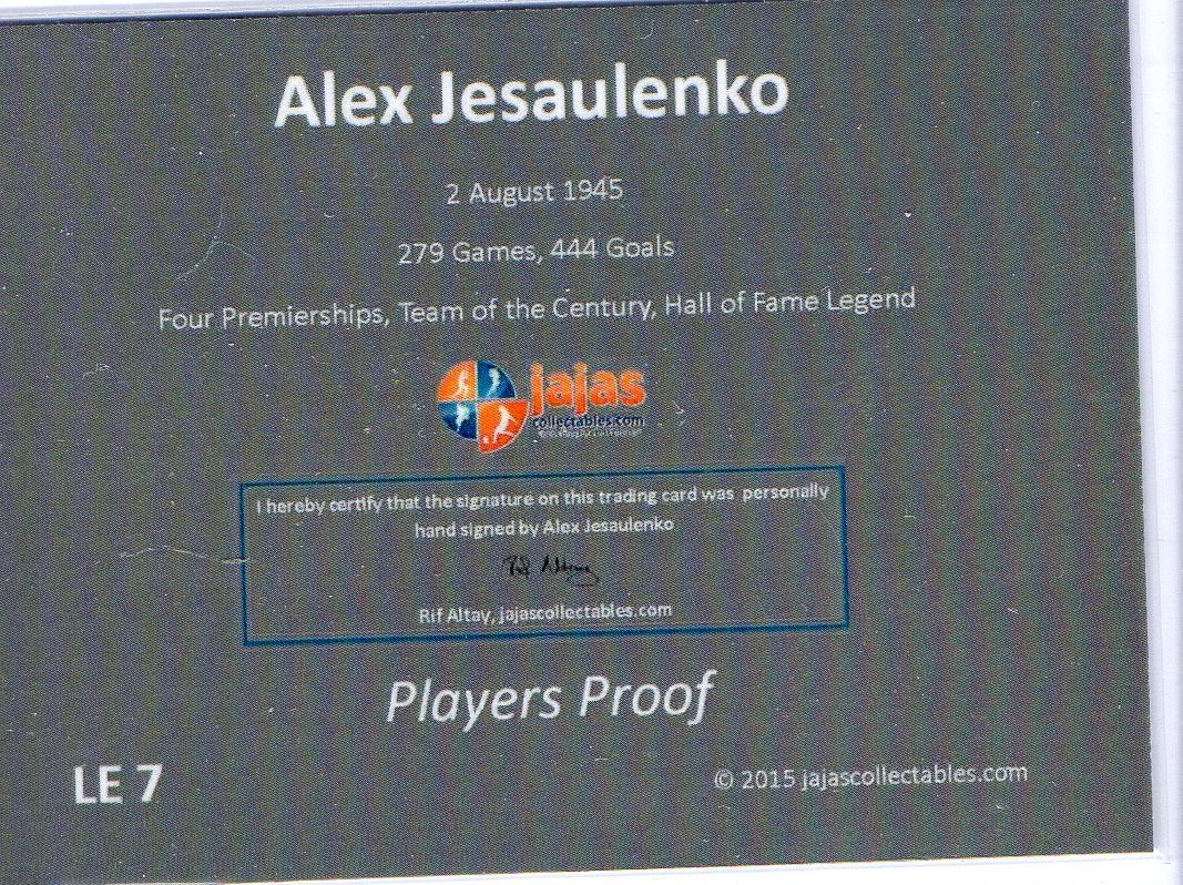 2015 JaJa's Alex Jesaulenko Signature - PLAYERS PROOF - Carlton Blues