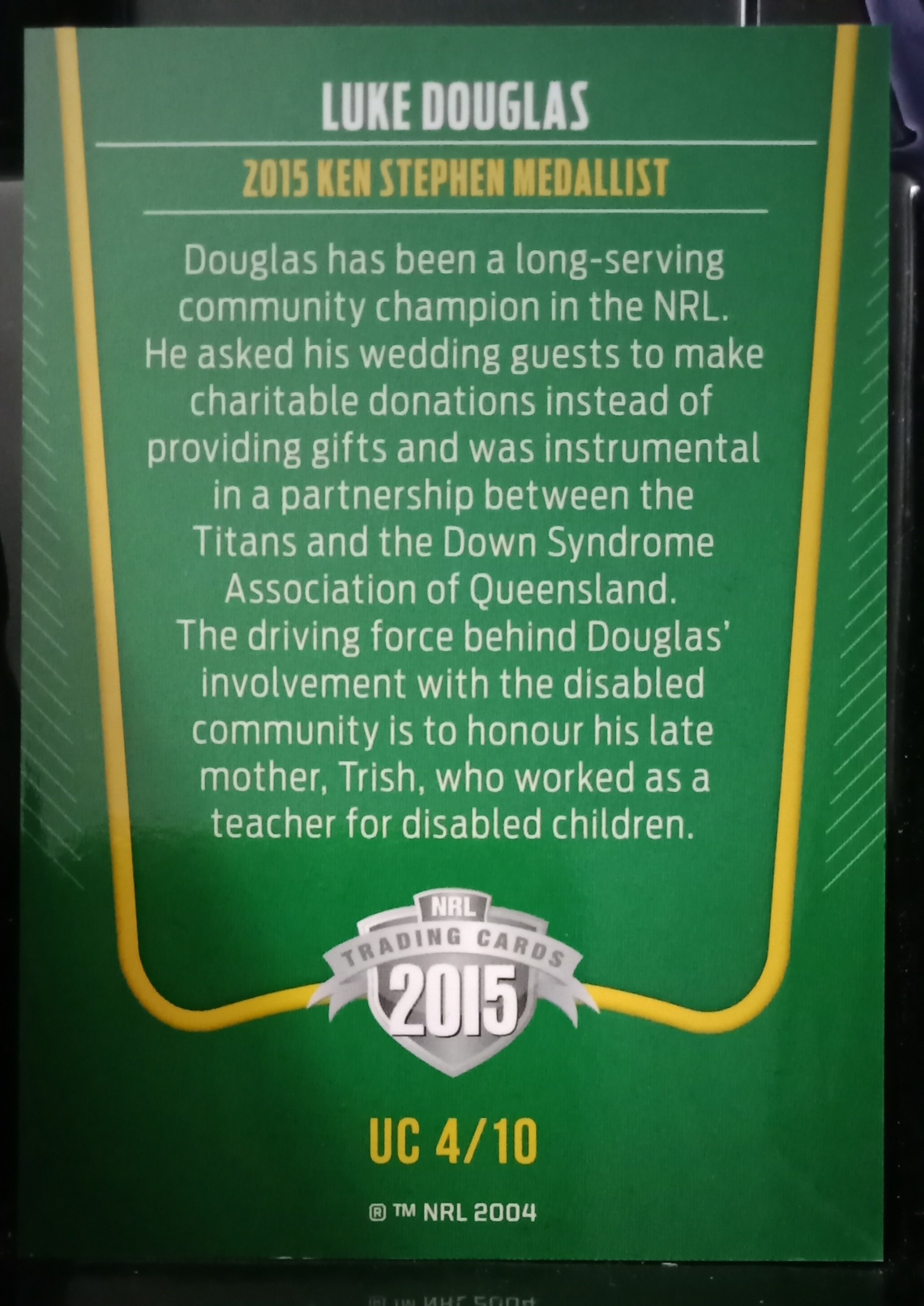 2015 NRL ESP THE ULTIMATE COLLECTION TRADING CARD - UC4/10 LUKE DOUGLAS KEN STEPHEN MEDALLIST