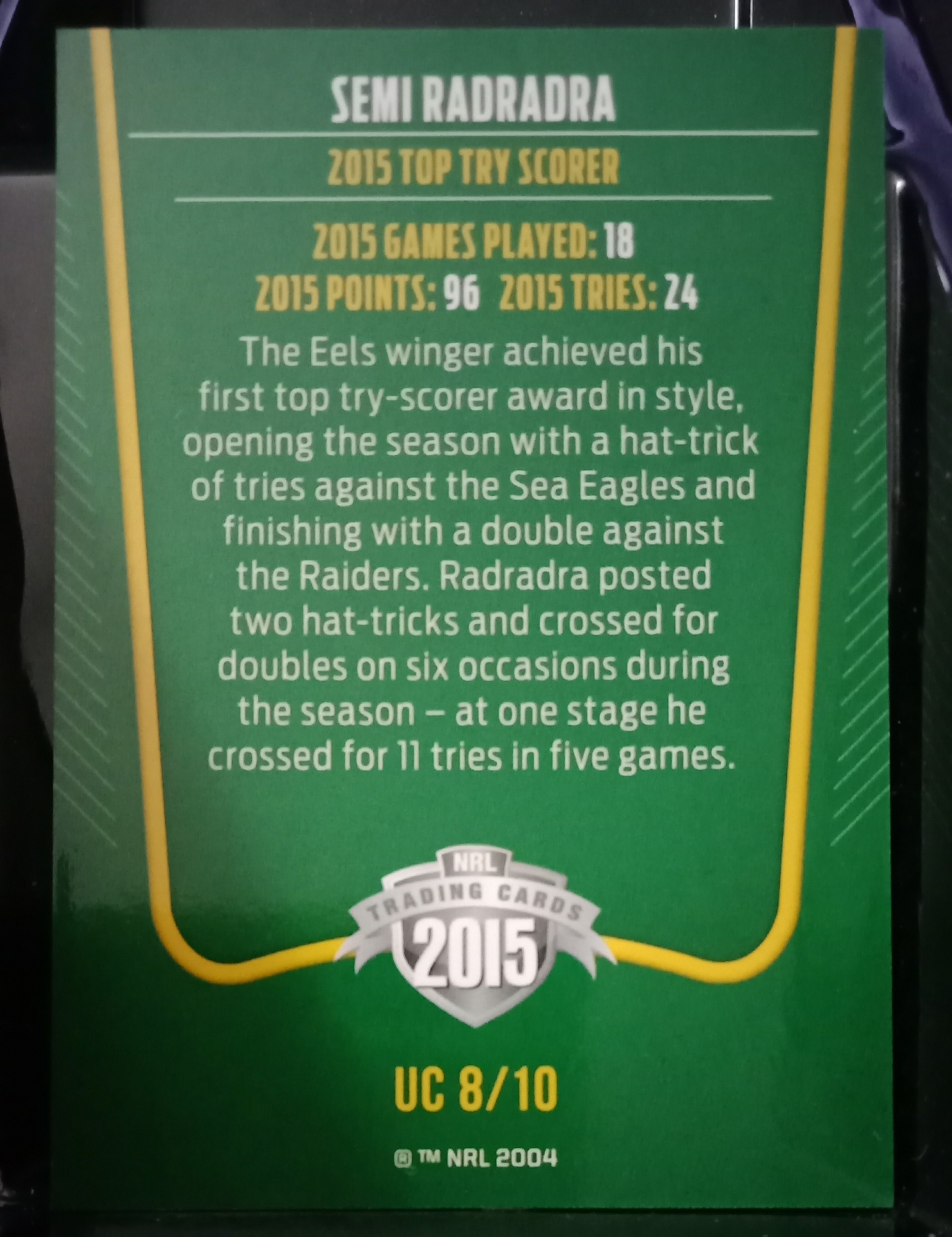 2015 NRL ESP THE ULTIMATE COLLECTION TRADING CARD - UC8/10 SEMI RADRADRA TOP TRY SCORER