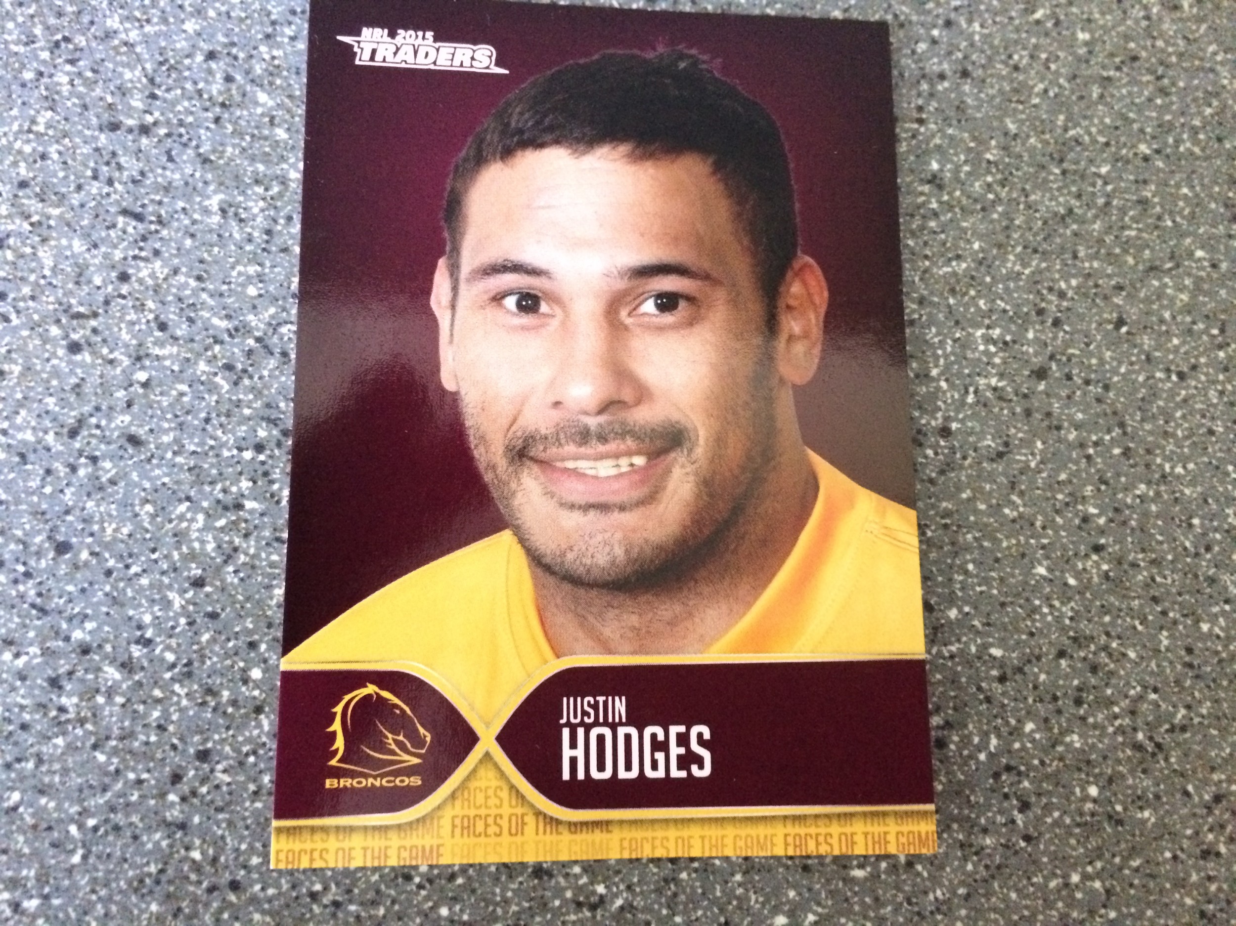 2015 NRL Traders Faces of the Game Card - Justin Hodges - Broncos