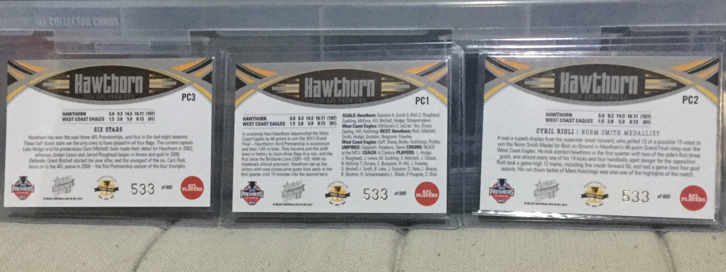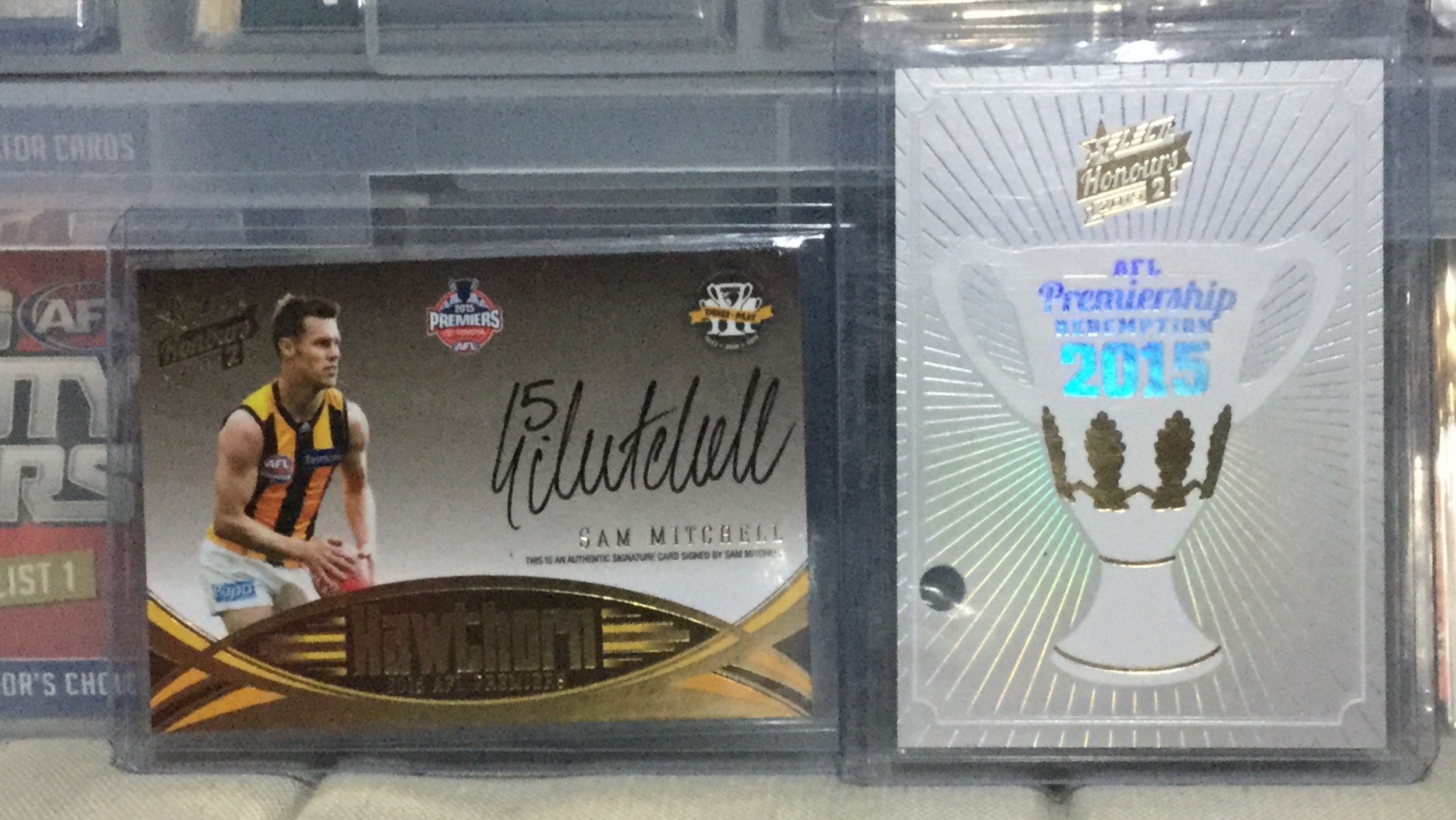 2015 SELECT AFL HONOURS PREMIERSHIP REDEMPTION SAM MITCHELL SIGNATURE & HAWTHORN HAWKS SET #533 - 5 CARD TOTAL